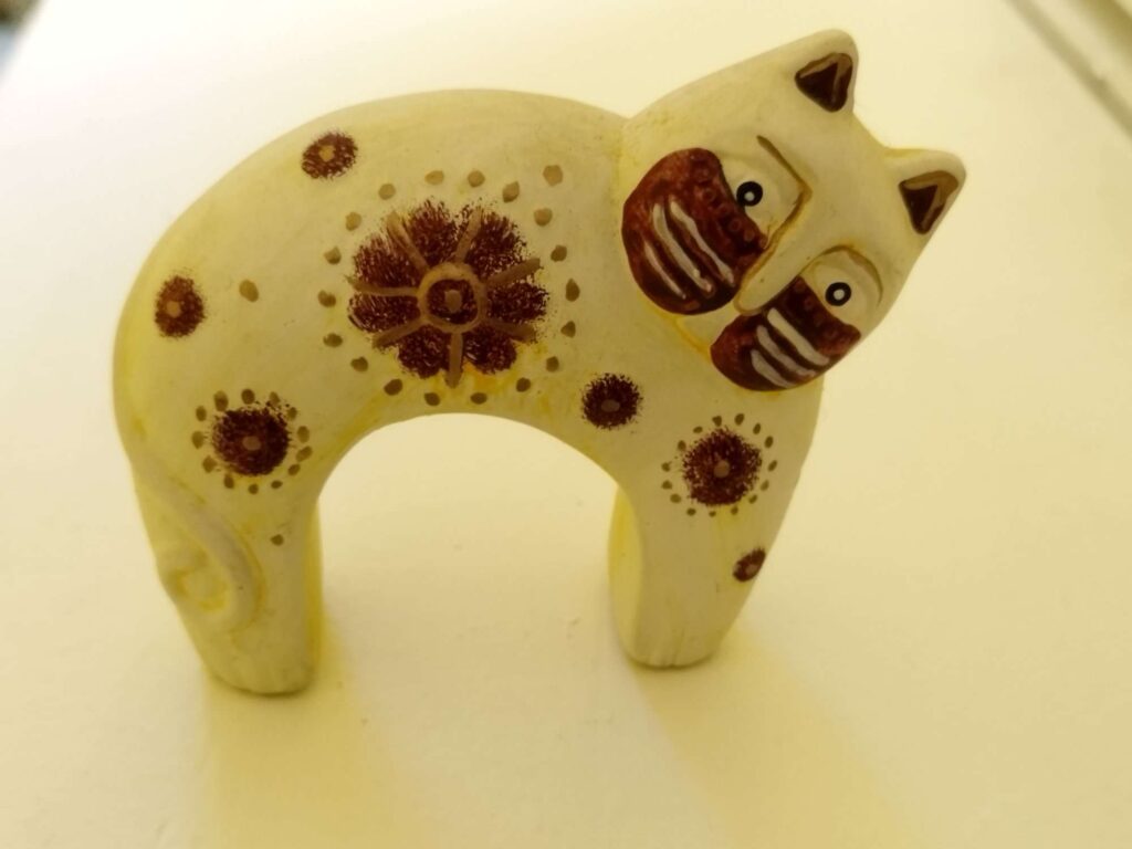 Kiek prisimenu, nuo vaikystės turėdavau katinų. Man katinas – pats gražiausias, protingiausias ir savarankiškiausias gyvūnas. Žavi tai, kad jis tarsi nuo senovės žmogaus prijaukintas, bet taip iki galo ir nepakluso žmonių įnoriams – gyvena taip, kaip nori. Iš mano murkiančios kolekcijos, tik du gali laisvai vaikščioti. Princas – Siamo mišrūnas ir Juodasis Perlas – priglaustas katinukas. Jie drauge vaikšto po kambarius ir poilsiui pasirenka mieliausią kampelį. O visi kiti nusėdę ant lentynų, palangių, spintelių, puošia namų interjerą. Katinai neša laimę.