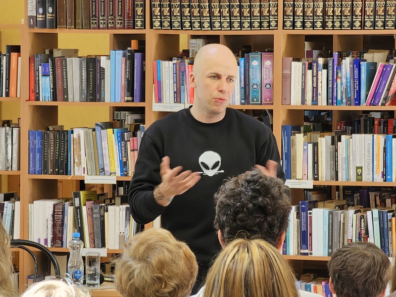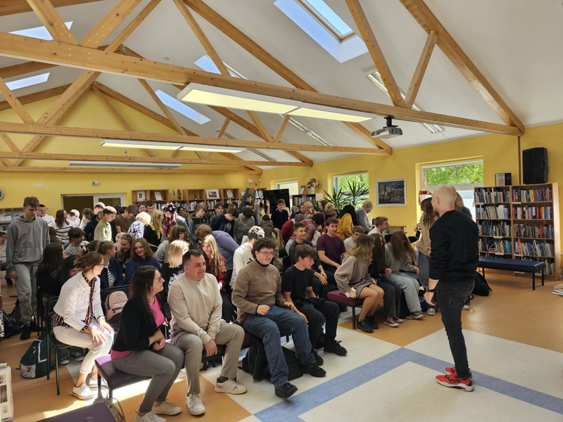 Pradžioje atlikėjas papasakojo apie savo kelią į muzikavimą, vaikystę ir kodėl nusprendė parašyti knygą, į kurią suguldyta ne tik intriguojanti atlikėjo autobiografija, gausybė paties Vido atrastų sąmoningo gyvenimo patarimų, bet ir krūva dainininko dainų tekstų ir natų (šią knygą galima jau galima rasti Ignalinos bibliotekoje). Vidas Bareikis kalbėjo apie jaunimui reikšmingus dalykus, kaip svarbu gebėti pasirinkti dalykus, žmones, kurie veda į priekį ir įkvepia kurti ar siekti užsibrėžtų tikslų. Klausimų atsakymų sesijoje negailėjo patarimų jauniems žmonėms. Dainininkas taip pat pasidalino mintimis kaip knygos, filmai, tinklalaidės padeda praplėsti kūrybingumą.