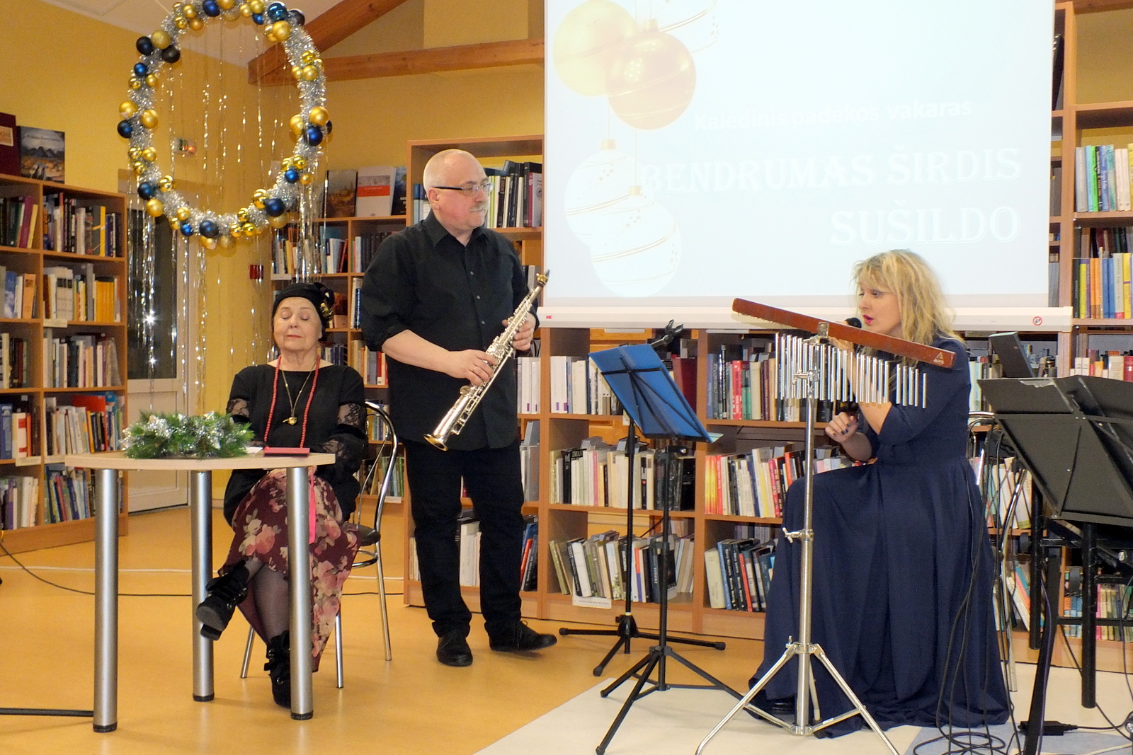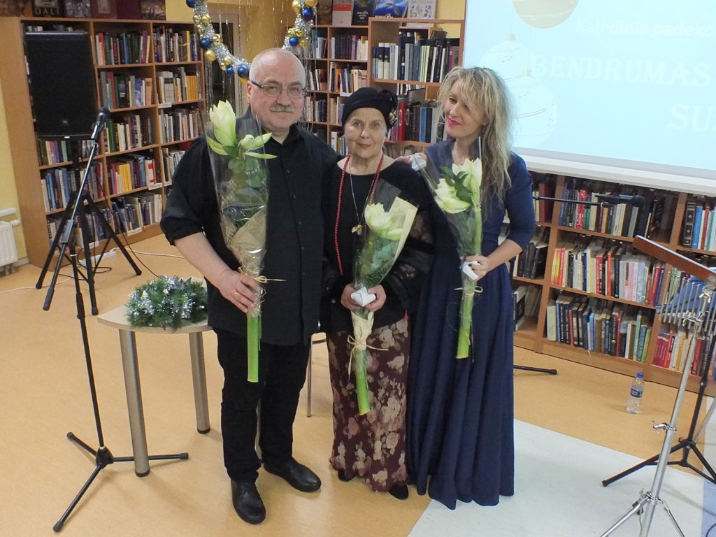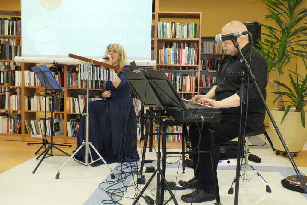 Gruodžio 18-ąją skaityrojai ir bibliotekos bičiuliai džiaugėsi renginiu „Bendrumas širdis sušildo“. Buvo aptarti svarbiausi projektai, renginiai. Nuostabią poezijos ir muzikos kompoziciją, nustebinusią netikėtomis improvizacijomis, dovanojo aktorė Dalia Jankauskaitė, džiazo virtuozas Vytautas Labutis ir dainininkė Indrė Daugėlaitė.