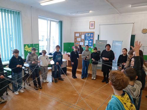 Kovo 8 d. Ignalinos Č. Kudabos gimnazijoje vyko edukacinės programos „Draugoteka“ veiklos 5-tų klasių mokiniams. Pradžioje bibliotekininkės, pasitelkdamos siūlų kamuolį susipažino su mokiniais ir jų pomėgiais. Susimezgęs voratinklis leido pamatyti, kad kiekvienas iš mūsų esame skirtingi, bet mus gali vienyti bendri pomėgiai, hobiai. Taip galime nesijausti vieniši, o susirasti draugų pagal pomėgius.