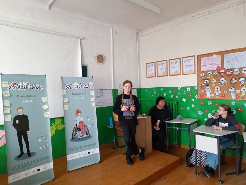 Edukacijoje mokiniai susipažino su 2 personažais – Saule ir Jonu. Užsiėmimo metu buvo atliekamos įvairios kūrybinės užduotys, kurios padeda laisviau ir drąsiau reikšti mintis, diskutuoti apie savo ir kitų asmenų emocinę būklę, rūpesčius. Mokiniai turėjo pažvelgę į šiuos du personažus pasakyti, kokiomis jie savybės galėtų pasižymėti iš pirmo žvilgsnio ir kokių problemų arba rūpesčių jie gali turėti. Vėliau buvo perskaityti trumpi šių herojų aprašymai ir tuomet jaunuoliai turėjo reflektuoti, kaip skiriasi įspūdis apie žmogų jį pamačius ir daugiau apie jį sužinojus. Bibliotekininkė Rūta trumpai pristatė dvi knygas: Daina Opolskaitė „Kur dingo Edvinas Kratas“ ir Alan Marshall „Aš moku šokinėti per balas“, kuriose yra pasakojama apie negalią turinčius, rūpesčių kamuojamus knygų herojus ir jų bendraamžius. Moksleiviai taip pat mokėsi susitapatinti su personažais, kritiškai vertinti savo asmenines vertybes, nagrinėjo žaidimo ir knygų herojų portretus, charakterius. Pabaigoje kiekvienas užrašė po jį kamavusią problemą, sustoję ratu jie „išmetė“ savo problemas į rato vidurį, tuomet kiekvienas turėjo paimti po draugo problemą ir padėti jam ją išspręsti.