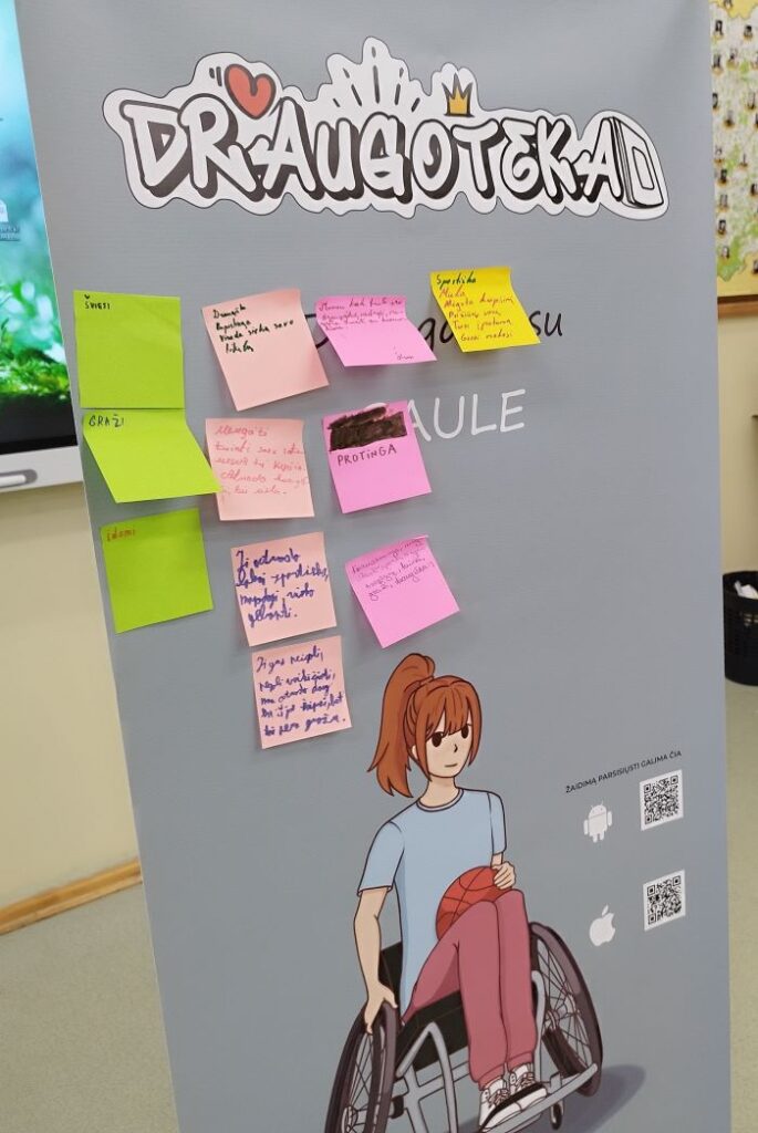 Mokiniai dalyvavo trijose „Draugotekos“ edukacijose. Pirmoji – „Saulė ir netikėti atspindžiai knygose“ – supažindino su literatūra, kurioje pasakojama apie negalią turinčius ar kitokius knygų herojus. Antroji edukacija, „Jonas ir rūpesčių sprendimo būdai knygose“, pristatė literatūrą apie rūpesčių kamuojamus bendraamžius. Trečiojoje veikloje – „Elijus ir stebuklingi nuotykiai knygų puslapiuose“ – mokiniai atliko įvairias užduotis, kūrė pasakojimus, dalyvavo kūrybinėje veikloje bei mokėsi kritiškai mąstyti.