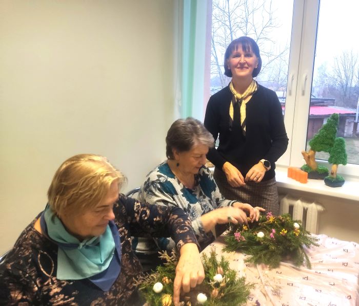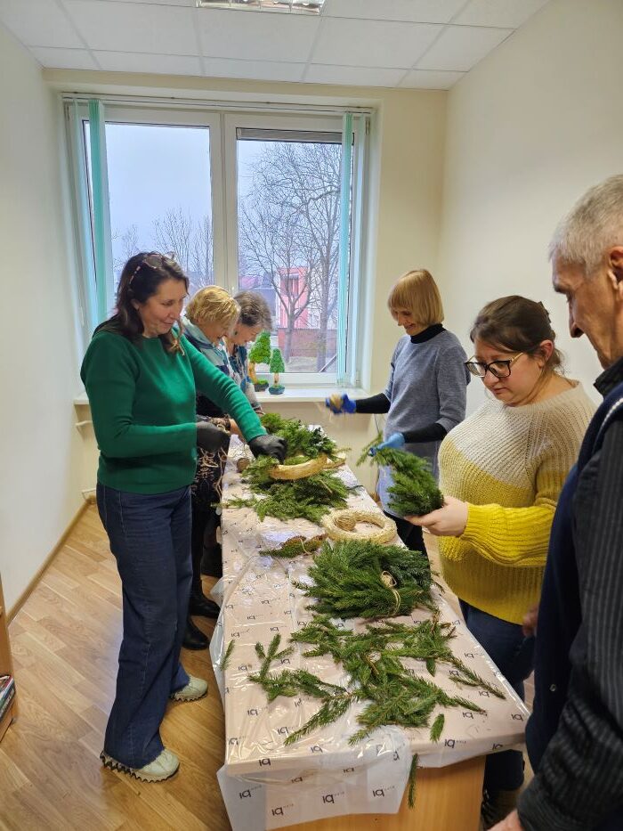 Dalyviai dėkojo Renatai Veličkienei už pagalbą pinant vainikus ir už įvairias dekoravimui skirtas priemones. Savo rankomis pagaminti vainikai papuoš namus ir įprasmins Kalėdų laukimo laikotarpį.