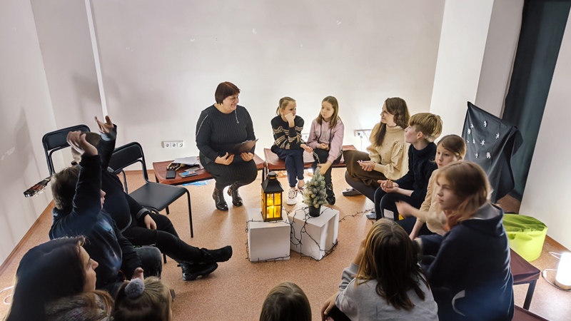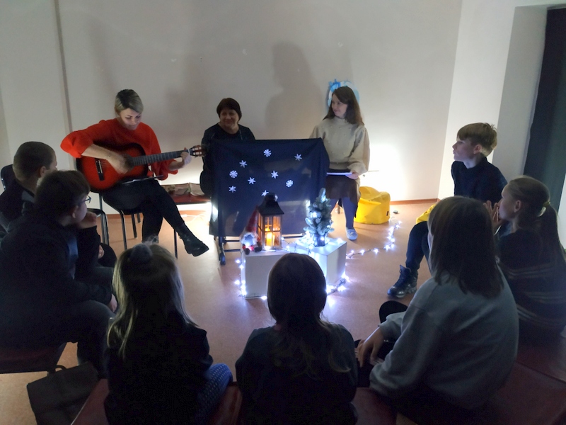 Jaukiai įsitaisę, mažieji, kartu su nykštuku, keliavo ieškodami kas gi galėtų uždegti užgesusį žibintą, kad Kalėdos rastų kelią į viso pasaulio žmonių širdis. Kūrė savo kalėdines pasakas, žaidė žaidimus, linkėjo vieni kitiems gražių ir prasmingų artėjančių švenčių.