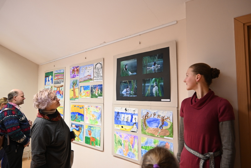 Pristatymo renginyje Gintarė Adomaitytė dovanojo knygas visiems, teisingai atsakiusiems į jos klausimus apie pasakas kūrusius rašytojus. Po knygą gavo ir 10 išrinktų parodos autorių, kurių piešiniai pasirodė meniškiausiai perteikę pasakų pasaulį. Apie tai, kaip vaikams sekėsi piešti, pasakojo Dailės studijos vadovė Nijolė Trinkūnienė. ,,Tai buvo gražus papildomas darbelis, linksmas nuotykis. Mes taip smagiai su vaikais skaitėme, diskutavome, ypač mažieji noriai kūrė iliustracijas…“,– sakė mokytoja. Parodėlėje eksponuojami 68 piešiniai. Pagal pasakas piešė 33 Dailės studijos mokinukai, viena mergaitė pateikė 4 menines fotografijas. Darbeliai išties saviti, įdomūs, išreiškiantys meilę savo kraštui, jo gamtai, kultūrai.