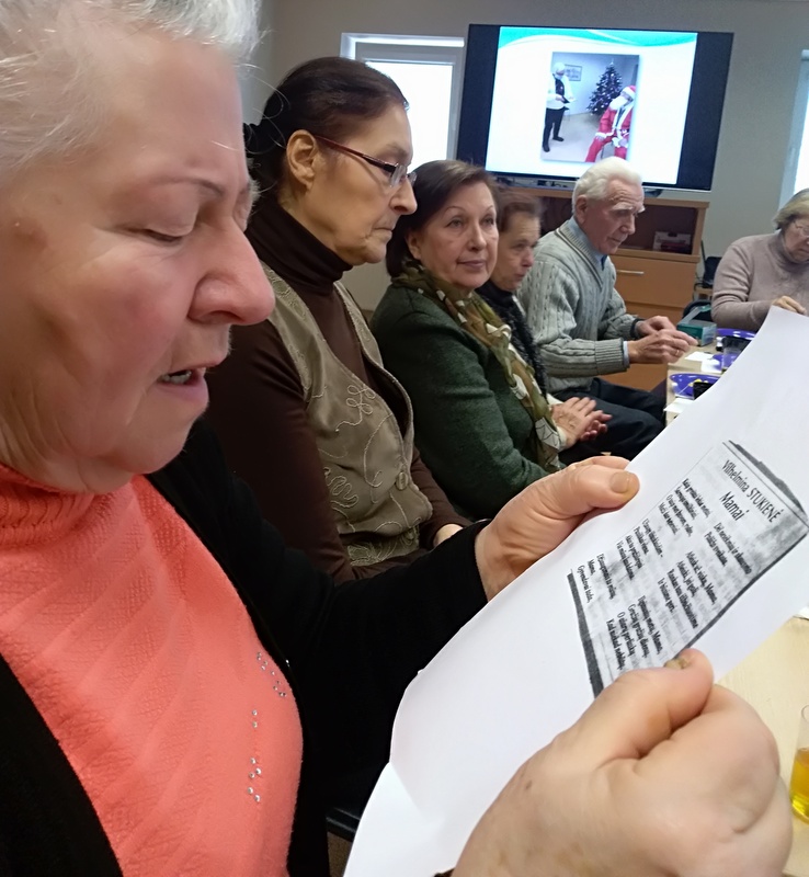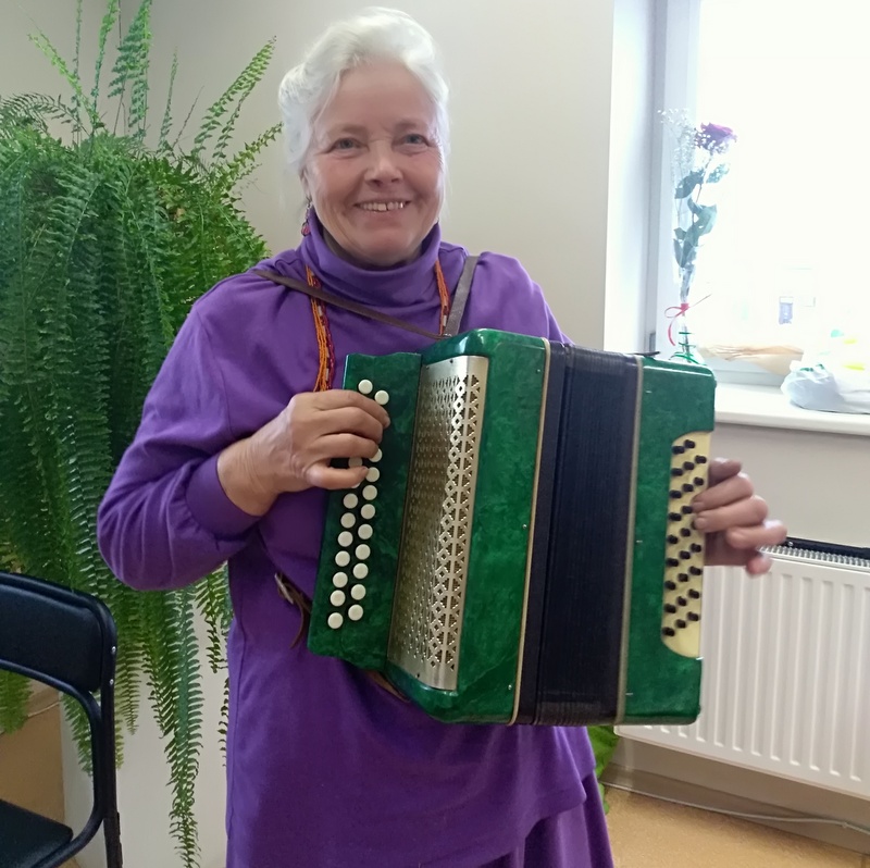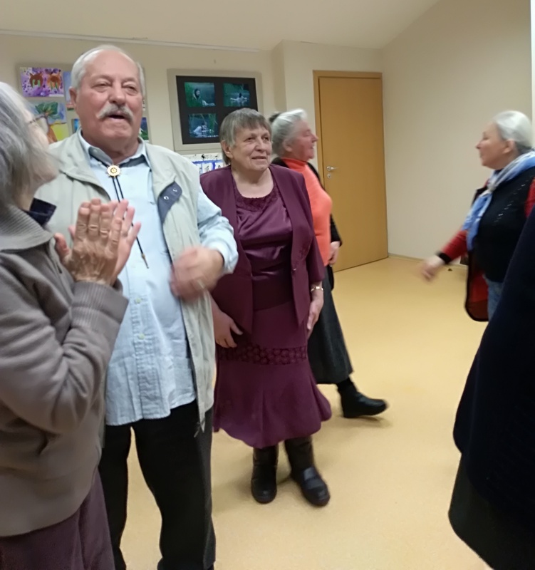 Vėliau buvo dainuojamos lietuvių liaudies dainos, šokami senoviniai šokiai, armonika grojo Pranė Milašauskienė.