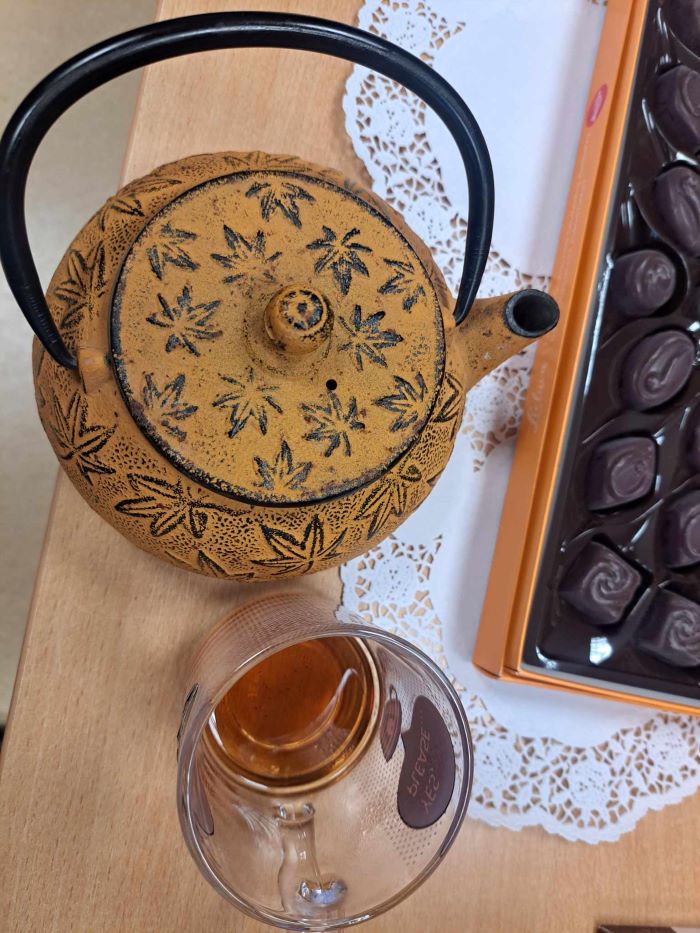 Rita sako, kad domėtis arbatomis ji pradėjo nuo 2019 m. po susitikimo su žmogumi, dovanojusiu arbatos ir japonišką arbatinuką. Iš pradžių būdavo jaukūs pašnekesiai su bendruomenės nariais prie arbatos puodelio, vėliau arbatų degustaciją Rita ėmė sieti su grožinės literatūros pristatymu. Pirmoji jos dėmesį patraukusi knyga buvo Dinah Jefferies „Arbatos plantatoriaus žmona“, vėliau – Fionos McIntosh „Arbatos sodai“ ir Lisos See „Arbatos mergaitė iš Kolibrių skersgatvio“. Rita pristatė minėtas knygas Mielagėnų bibliotekos lankytojams, o po to vyko arbatų degustavimas, pokalbiai. O už lango artėjo sutemos ir krito pirmasis sniegas.