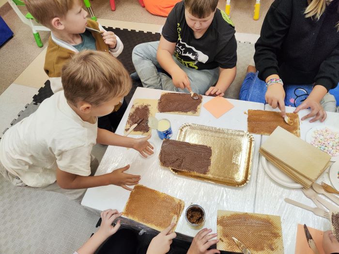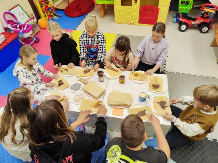 Mažylių skaitykloje vyko kulinarinė edukacija „Mažylių pyragas“. Vaikai turėjo progą išbandyti rankų miklumą gamindami pyragą iš vaflių. Patys mažieji tepė įvairius ingredientus ir sluoksniavo vaflius, sukurdami savitą skonių derinį. Po šio smagaus užsiėmimo dalyviai buvo pakviesti stebėti trumpą spektakliuką „Pagrandukas“, kurį parengė Mingailė, Lėja ir Viltė. Galiausiai visi draugiškai skanavo savo pačių sukurtą „pyrago“ šedevrą, mėgaudamiesi pasiektu rezultatu.