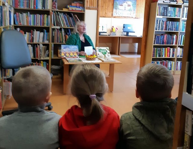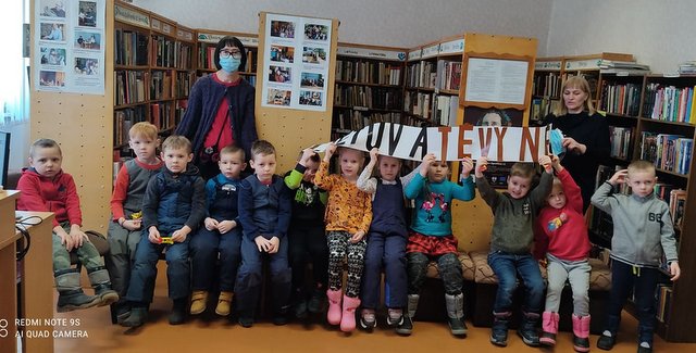 Mažuosius į biblioteką palydėjo auklėtojos Irena Drūteikienė ir Rita Krasienė.   atsinešė pavasario dvelksmą ir  gerą nuotaiką.