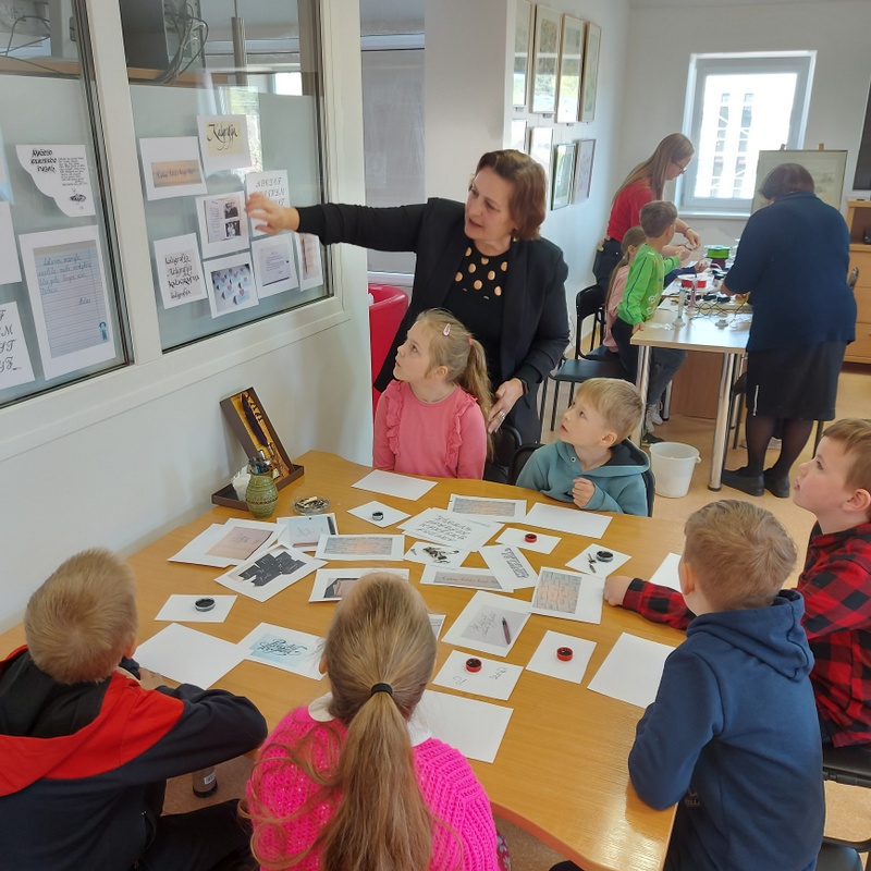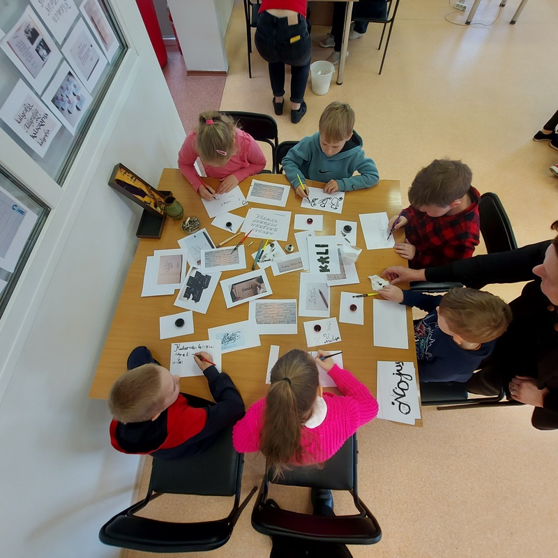 Ignalinos Česlovo Kudabos gimnazijos pradinukai antrokai dalyvavo Spaudos atgavimo, kalbos ir knygos dienos proga Ignalinos viešojoje bibliotekoje surengtose kūrybinėse dirbtuvėse. Mokinukai susipažino su bibliotekoje esančia knygų įvairove: ir pačiomis mažiausiomis, ir daugiausiai sveriančiomis, ir seniausiomis, taip pat šiuolaikinėmis knygomis su garsais, be žodžių ar lytėjimo funkciją lavinančiomis. Antrokai sužinojo kas ta kaligrafija ir galėjo tušu įvairiomis plunksnomis dailiai išrašyti, išpiešti raides, savo vardus. Dar tądien vaikai galėjo pabandyti spausdinti rašomąją mašinėle, 3 D pieštukais nupiešti savo vardo raides, 3 D spausdintuvu atspausdintomis raidėmis kurti žodžius. Vaikai stengėsi sugalvoti iš esamų raidžių kuo daugiau žodžių. Visi buvo labai kūrybingi, greitai mąstantys ir kruopštūs.