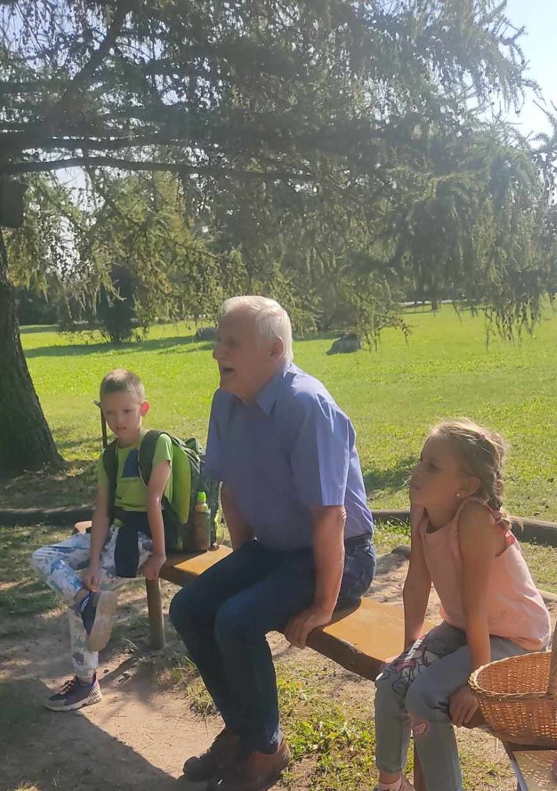 Mokiniai ne tik uždavė biologui daug įvairių klausimų, bet ir patys žinojo teisingus atsakymus į pateiktus klausimus. Minė mįsles apie gamtą, klausėsi paukščių čiulbėjimo, stebėjo, kaip kėkštas, atskridęs iš miško, smagiai rinko giles.