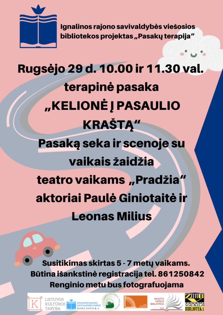 Spektaklis „Kelionė į pasaulio kraštą” organizuojamas vykdant projektą „Pasakų terapija“, kurį iš dalies finansuoja Kultūros rėmino fondas