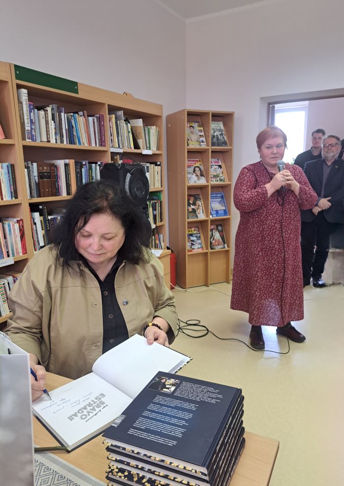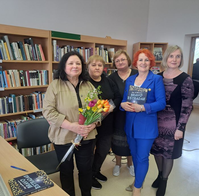 Ką tik praėjusios Nacionalinės Lietuvos bibliotekų savaitės tema: „Europos šeimoje“ buvo pasirinkta neatsitiktinai: šiemet minimas Lietuvos įstojimo į Europos Sąjungą 20 –metis. Visose bibliotekose vyko daug įvairių šiai progai skirtų renginių, pamokų, susitikimų. Susitikti, pabendrauti su rašytojais turėjo galimybę ir atokesnių filialų skaitytojai. Balandžio 25 d. Ignalinos raj. savivaldybės viešosios bibliotekos Mielagėnų filiale vyko susitikimas su IĮ „Mažoji leidykla“ direktore rašytoja, knygų sudarytoja Inga Liutkevičiene, kuri pristatė savo knygą „Bravo estradai!“. Ši knyga – tikra dovana vyresniosios kartos žmonėms, tai pasakojimas apie muziką, kurios klausėsi, pagal kurią šoko dabartiniai močiutės ir seneliai. Dauguma iš atėjusių į knygos pristatymą buvo bendraamžiai, kuriems šis susitikimas priminė romantiškas jaunystės akimirkas: nedažnas keliones į koncertus sostinėje, šokius iki paryčių kaimo gegužinėse (kuokinėse) arba kultūros namuose skambant lietuviškai estradinei muzikai iš patefono plokštelių. Todėl jau belaukiant į susitikimą skubančios rašytojos, (kurią šiek tiek paklaidino navigacija – nuvedė į Melagėnų kaimą Švenčionių rajone), bibliotekoje tarp susirinkusiųjų įsivyravo linksma nuotaika. I. Liutkevičienės knygos herojai – 70 – 80 metų estrados dainininkai, muzikantai, kompozitoriai. Knygos įžangoje Inga Liutkevičienė rašo: „Išvyka į estradinį koncertą sovietmečiu reiškė didelę šventę. Estradiniai koncertai tuomet buvo neapsakomai populiarūs, sunku būdavo gauti bilietų. Dainų tekstai būdavo neutralūs, bet kartu ir bendražmogiški, visiems aktualiomis temomis. Dainos vienijo klausytojus neįmantriais, bet į širdį giliai įkrintančiais ir ilgam joje pasiliekančiais žodžiais. Atlikėjai demonstravo ir diktavo mums drabužių ir šukuosenų madas. Estrada turėjo magijos ir paversdavo mus kažkur esančio laisvojo pasaulio dalimi.“ Inga Liutkevičienė demonstruodama skaidres pasakojo apie knygos herojus – dainininkus, kompozitorius, apie susitikimus su jais seniau ir dabar, rašant knygą. Vyko ir savotiška viktorina –žiūrėdami į dainininkų nuotraukas, bandėme prisiminti, kas jose įamžintas. Taip paaiškėjo didžiausi senosios estrados gerbėjai. Antroji susitikimo dalis buvo muzikinė. Dainavo Ignalinos kultūros centro Mielagėnų padalinio kolektyvas „Volungė“ ir viešnia iš kaimyninio rajono – Švenčionių rajono savivaldybės viešosios bibliotekos Sarių filialo bibliotekininkė Aldona Milaševskaja. Dainavo visi. Renginys prabėgo akimirksniu. Buvo galima nusipirkti knygą, gauti autorės autografą. Atsisveikinant dainą padainavo renginio viešnia Indrė Gruodienė.