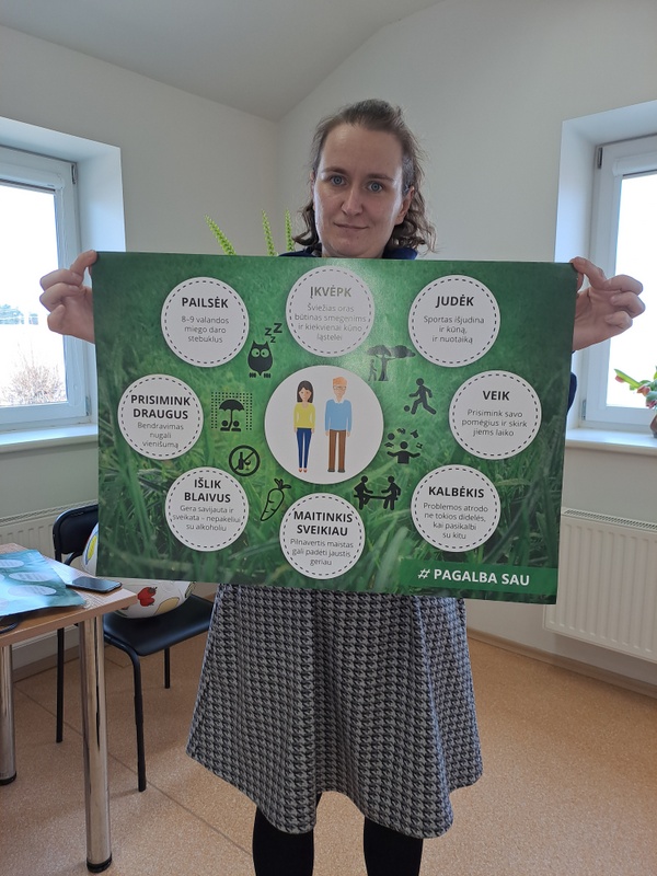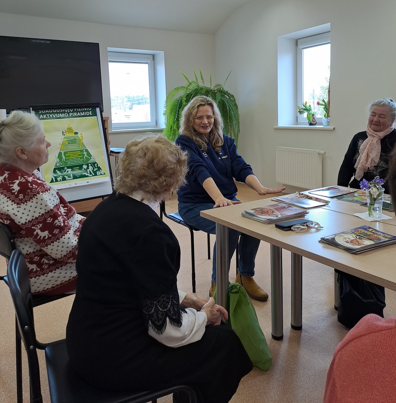Kovo 25 dieną klubo „Rudenėlis“ popietėje „Būkime sveiki ir žvalūs“ viešėjo visuomenės sveikatos biuro specialistės Agnė Paukštienė ir Jolita Kazulėnienė. Jos senjorams pristatė biuro veiklas. Susitikimo metu smagiai pasimankštino, pasivaišino skaniu gėrimu (glotnučiu), prisiminė fizinio aktyvumo ir subalansuoto maisto piramides, padiskutavo apie gerą emocinę savijautą. Vėliau jaukioje bibliotekos aplinkoje senjorai tradiciškai sveikino sausio – balandžio mėnesiais gimusius klubo narius su gimtadieniais, įteikė gėles, giedojo ilgiausių metų, linkėjo sveikatos, saulėto pavasario. Bendraudami prie arbatos puodelio senjorai valgė gimtadienius švenčiančių tortą, dainavo lietuvių liaudies dainas, klubo narė Vilma skaitė savos kūrybos eiles.