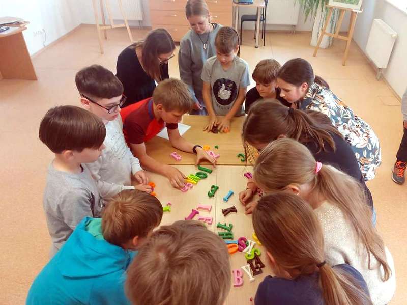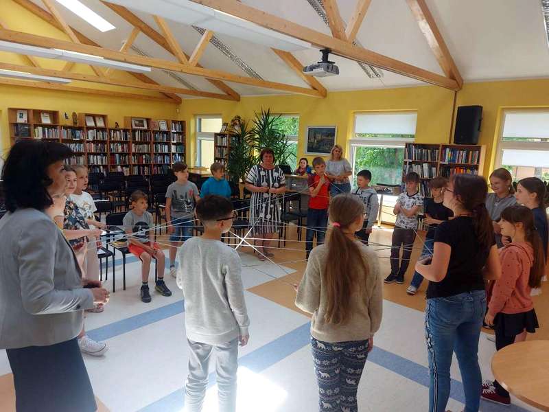 Po apdovanojimų laukė žaidimai ir linksmybės. Ketvirtokų klasės atskirose bibliotekos erdvėse dalyvavo žaidimuose ir atliko įvairias užduotis. Skaitykloje kūrė istorijas pagal gautas korteles. Kokių tik nebuvo istorijų: apie burtininkus, apie stebuklingą gėrimą, apie katiną su riedučiais ir dar apie daug kitų įdomių negirdėtų dalykų. Smagiai vyniojo siūlų kamuolį, atskleisdami savo pomėgius ir dalindamiesi jais su klasės draugais. Atradimų erdvėje ketvirtokams teko iš 3D spausdintuvu atspausdintų raidžių sudėlioti kuo daugiau ir įvairesnių žodžių. Taip pat mokiniai teisingai sudėti sukarpytą pasakos tekstą, čia reikėjo prisiminti lietuvių kalbos pamokas arba skaitytas pasakas.