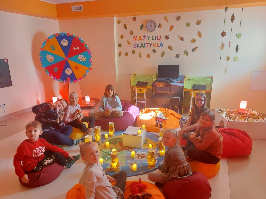 Spalio 15 d. Ignalinos rajono savivaldybės viešosios bibliotekos Mažylių Skaitykloje vyko edukacija „Rudenėlio žibintas“, kurios metu vaikai klausėsi  sekamos šviesios ir viltingos pasakos „Mergaitė ir žibintas“. Mažieji  entuziastingai suvaidino išklausytą istoriją ir aktyviai dalyvavo rudeninių žibintų kūrimo dirbtuvėlėse.