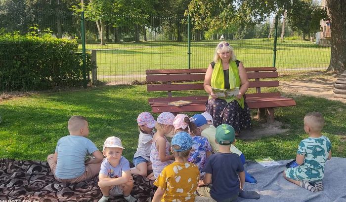 Mažieji, pasislėpę gamtos pavėsyje, vartė ir apžiūrinėjo knygutes, įdėmiai klausėsi linksmų eilėraščių apie vasaros džiaugsmus bei pievoje grojančius žiogus. Džiaugėmės bendryste ir linkėjome vaikučiams išgirsti dar daug pasakų bei susirasti darželyje gerų draugų.