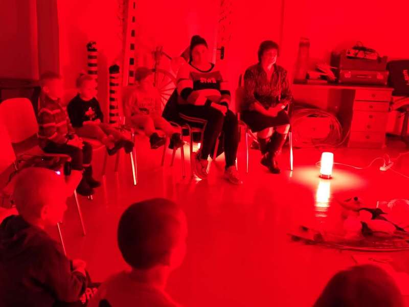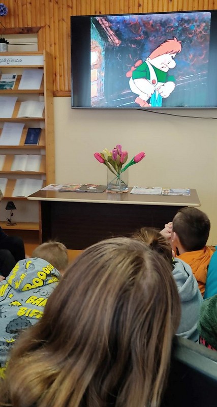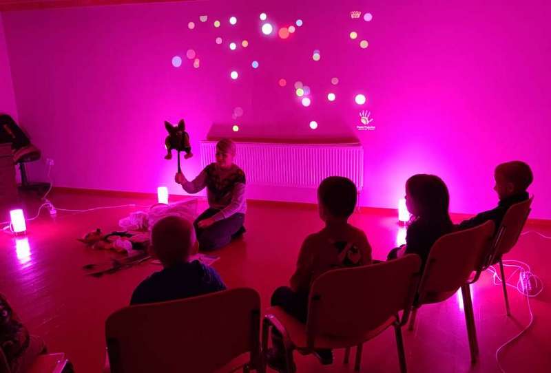 Lapkričio 18 d., Šiaurės šalių literatūros savaitės proga, į Ceikinius, kaip ir žadėjo, atvyko Ignalinos viešosios bibliotekos darbuotojos. Seklyčios erdvėje, apšviestoje sensorinės įrangos, Ignalinos Česlovo Kudabos gimnazijos Ceikinių skyriaus ikimokyklinukai ir priešmokyklinukai klausėsi Orianne Lallemand, Éléonore Thuillier pasakos „Vilkas keičia spalvą“. Besikeičiančios spalvos, šiaurės šalių vaizdai, muzika žadino vaikų smalsumą, vaizduotę, teigiamas emocijas. Visi aktyviai dalyvavo viktorinoje gamtos tema. Drąsiausieji išbandė planšetės galimybes: patys keitė spalvas, vaizdus, garsus.