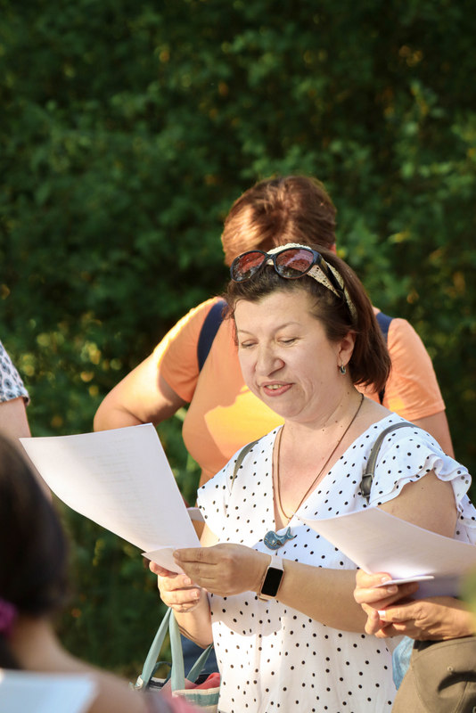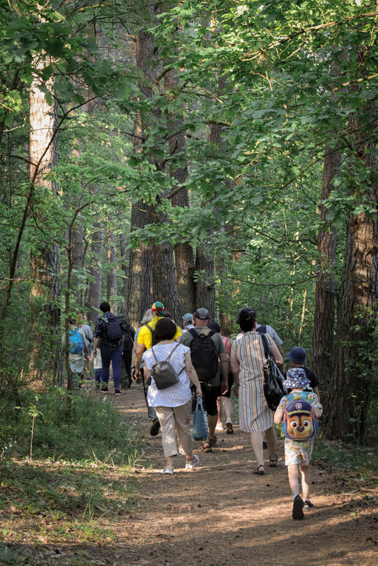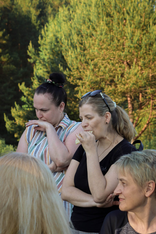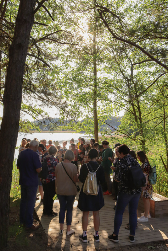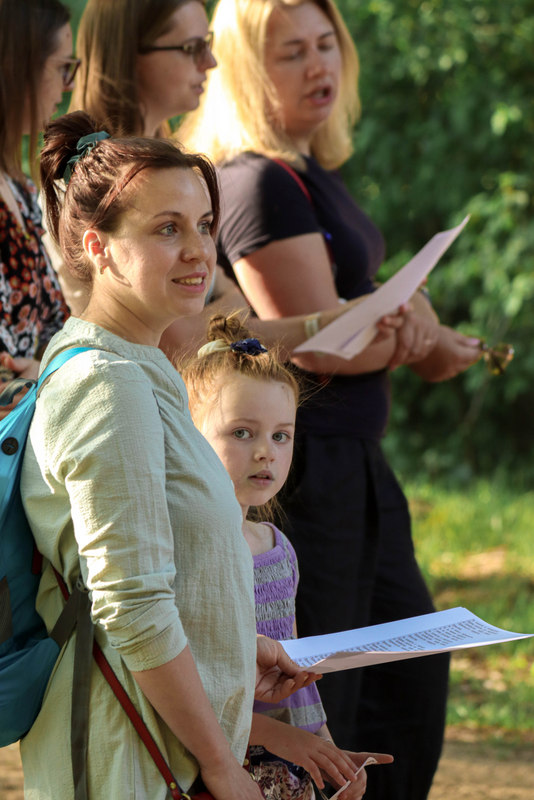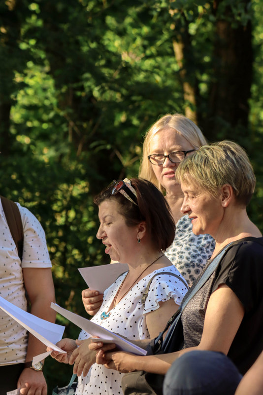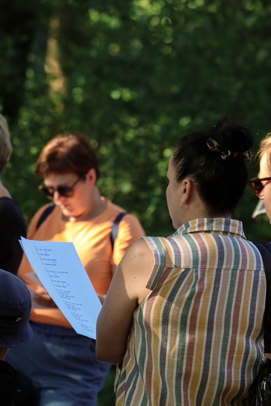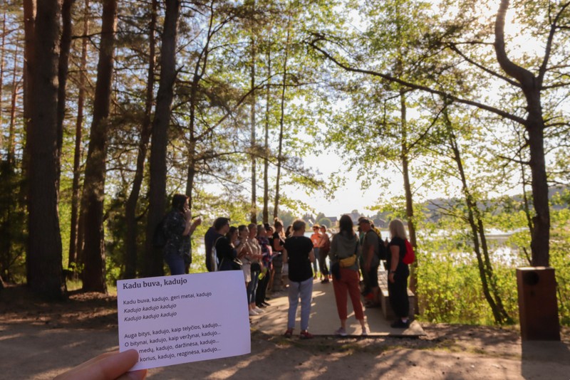 Pasiskirstę į aštuonias komandas žygeiviai gavo užduotį, kurią, pasitelkdami telefonus, sumanumą ir išradingumą, turėjo atlikti iki kitos stotelės. Stabtelėję gražioje laukymėje prie ežero, Jūratės, Sigutės ir Erikos vadovaujami, dalyviai išbandė lietuviškų sutartinių dainavimą, o Olena pakvietė kartu padainuoti ir porą ukrainiečių liaudies dainų.