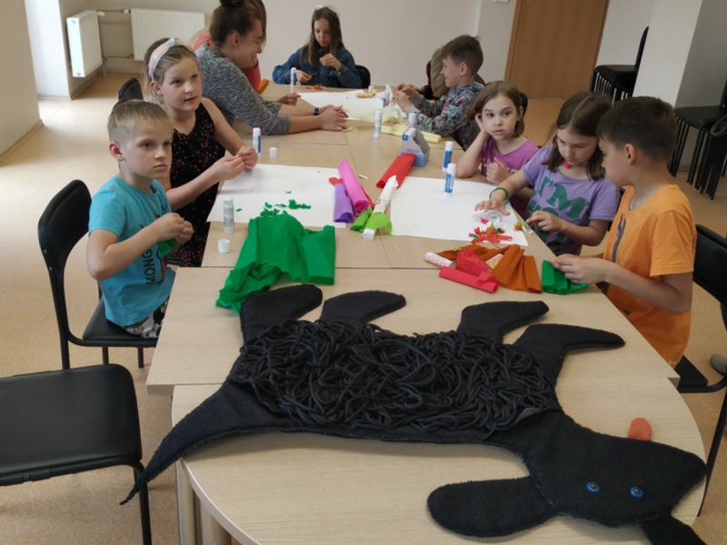 Sukūrę istoriją vaikai pasiskirstė į nedideles grupeles ir gavo užduotį padailinti šunį ir sukurti trumpą istoriją apie jį. Kaip vaikams sekėsi galite pamatyti nuotraukų galerijoje.