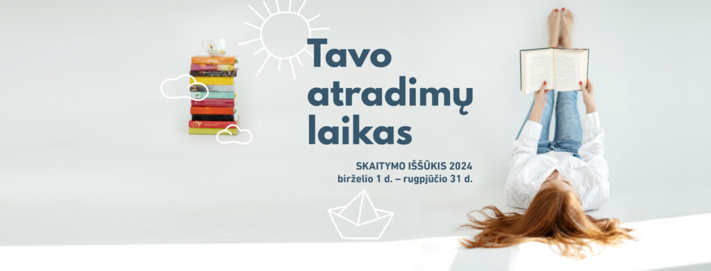 Vasara neieško pasiteisinimų, neatidėlioja, neklaidina, ji tiesiog ateina. Drauge su ja ateina ir jau 9-asis skaitymo iššūkis „Vasara su knyga“, kuris šiemet kvies neatidėliojant leistis į atradimų kupiną nuotykį, nes vasara su knyga – tai Tavo atradimų laikas. Tų, kas per tris įkvepiančius mėnesius įveiks iššūkį – suskubs perskaityti penkias knygas pagal paskelbtas užduotis, – lauks atminimo dovanėlės bei loterija, kurios laimėtojams atiteks 200 eurų dovanų kuponas knygoms, miesto dviratis ir daug kitų prizų.
