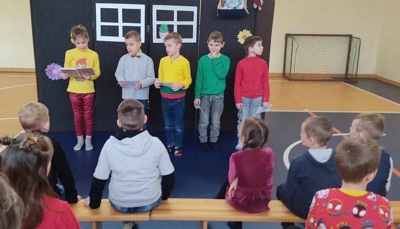 Saulėtą, bet vis dar žiemišką vasario rytmetį į Vidiškių gimnazijos salę skubėjo Vidiškių darželio vaikučiai, kuriuos atlydėjo auklėtoja Rita Krasienė. Atėjusius į gimnaziją pasitiko pirmokai su savo mokytoja Jūrate Šalkauskiene.