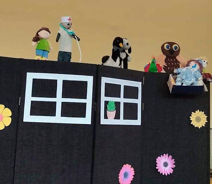 Į svečius pas vaikus tą dieną atvyko Ignalinos viešosios bibliotekos lėlių teatras „Mįsliukas“, kuris mažiesiems vidiškiečiams parodė nuotaikingą spektakliuką pagal Justino Marcinkevičius eiliuotą pasaką „Greitoji pagalba“.