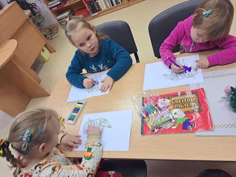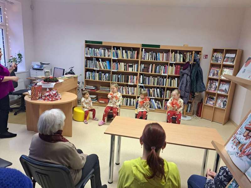 Į Mielagėnų biblioteką kasdien atbėga Mielagėnų skyriaus  ikimokyklinės grupės mergaitės. Čia jos ir pačios bando sudėlioti pirmuosius žodžius, ir pasiklauso joms skaitomų knygelių, žiūri filmukus, labai mėgsta spalvinti, pasakoti, mokėsi gaminti kalėdinius atvirukus, iškirpti snaigę. Bene du pastaruosius mėnesius bepiešdamos jos vis imdavo dainuoti „Lapatai lapatai…“. Tai  žodžiai vienos iš dainelių, kurią su savo mokytoja Neringa mokėsi šventėms. Savo programėlę, kurios tema „Namai“, rodė tėveliams ir Kalėdų Seneliui Eglutės įžiebimo šventėje. Po šventės, atėjusios į biblioteką, jos ir toliau dainavo, ką išmokusios. Paklausus, ar nenorėtų dar kartą padovanoti savo koncertą tiems, kas jo nespėjo pamatyti, jos mielai sutiko. Tad gruodžio 22-os rytą tas mielas mini renginukas įvyko Mielagėnų bibliotekoje. Mažylių dainelės, eilėraštukai susirinkusioms bibliotekos lankytojoms suteikė gerų emocijų švenčių laukime, buvo išsakyta gražių linkėjimų, padėkota už gražų buvimą kartu.