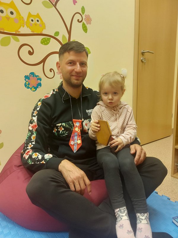 Birželio 3 d. Mažylių skaitykloje vyko Tėčio dienai skirta edukacija „Padovanok tėčiui šypseną“. Vaikai  aktyviai klausėsi  skaitomos  istorijos apie Kakės Makės  supertėčio dieną (Linos Žutautės knygos), kalbėjosi apie tai kaip smagu ir gera būti su tėčiu, kaip svarbu jį turėti, kokias įdomias veiklas galima nuveikti kartu. Su tėčiu visuomet  jautiesi saugus,  tėtis apgina  ir paguodžia, moka nuraminti. Su juo visuomet būna linksma. Taip pat vaikai dalyvavo  kūrybinėse dirbtuvėlėse, kurių metu gamino kaklaraiščius savo  mylimiems tėveliams dovanų.
