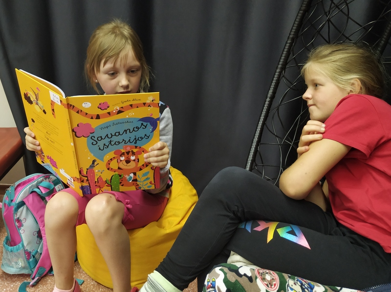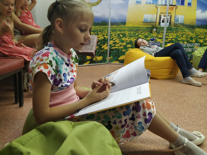 Liepos 20 d. bibliotekoje vyko vasaros garsiniai skaitymai, šį kartą apie gyvūnus. Bibliotekininkė su vaikais skaitė Virgio Šidlausko knygą „Savanos istorijos“. Tai linksmos istorijos apie žirafą, kuriai kažkas nudžiovė kūną, apie ryklį, kuris nevalgė mėsos, mergaitę, kuri spintoje augino dramblį ir negirdėta istorija apie balandį, lesinantį žmones. Gyvūnai kartais būna ir juokingi, ir įdomūs. Vaikai pasakojo apie jiems patinkančius gyvūnus, ką norėtų auginti namuose, žaidė žaidimą „Atspėk gyvūną“. Po žaidimo teko padirbėti – išlankstyti iš popieriaus ryklį, balandį, dramblį. Pasidžiaugę savo darbeliais vaikai išsiskirstė iki kito susitikimo kitą trečiadienį.