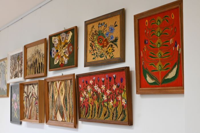 Moters paveikslai – tai lyg jos kelias, jos jausmų vaizdinė kelionė ir meniška išraiška. Žvilgsnį malonina labai šiltos žemiškos spalvos, o tie dygsniai – lyg koks vandens tekėjimas. ,,Į šiuos paveikslus sudygsniuotas Birutės gyvenimas…“, – sakė vakarą vedusi Jolanta Narbutaitienė. Birutė ją anūke vadina, nors jų ir nesieja kraujo ryšys, bet jungia vienos šeimos su metais vis stiprėjantis jausmas. Paroda džiaugėsi ir du Birutės sūnūs, anūkai, ir gitara grojęs, jautrias dainas jai skyręs Jolantos brolis Vaidas Utka.