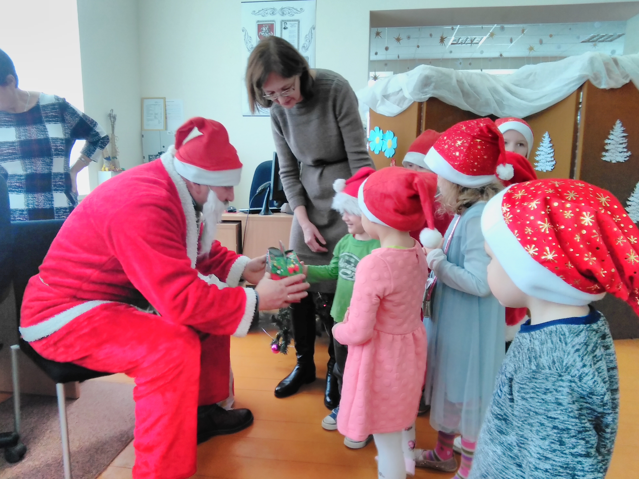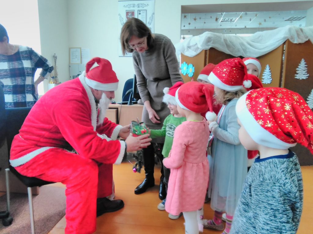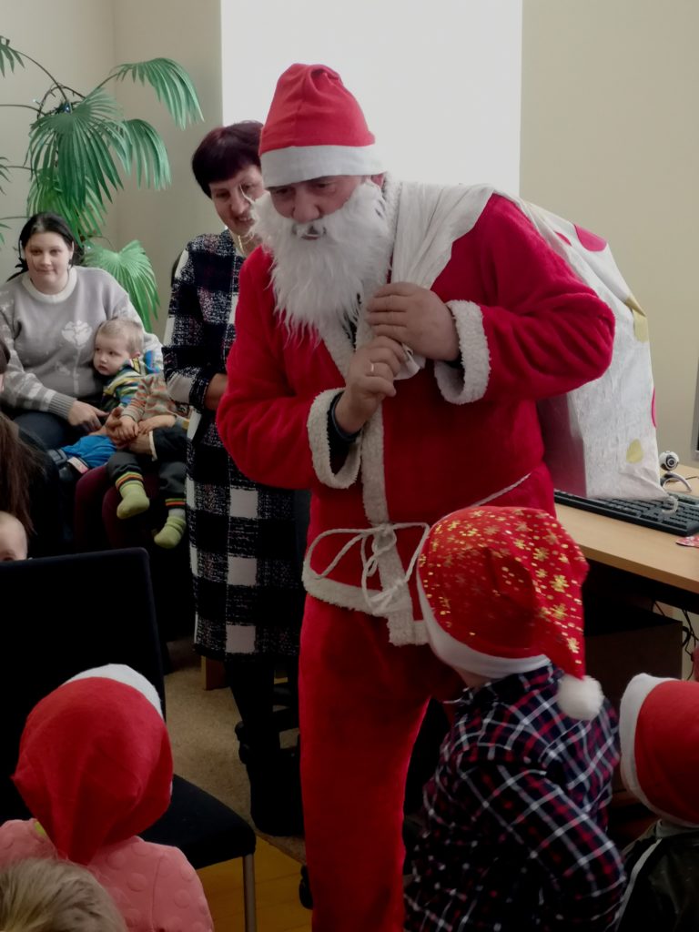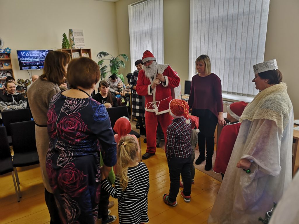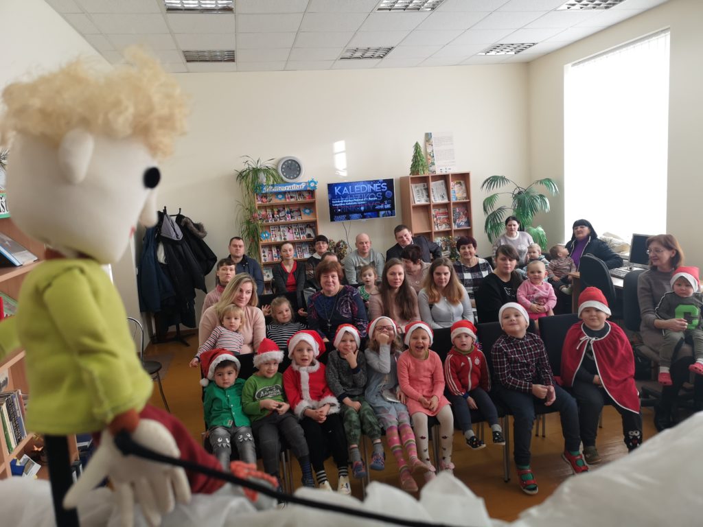 Iš anksto pranešęs, kad Ceikinių kaimo bendruomenės vaikučius aplankys gruodžio 18 d., į biblioteką atvyko Kalėdų Senelis. Ir ne tik jis. Mažuosius pradžiugino Ignalinos rajono savivaldybės viešosios bibliotekos lėlių teatriukas „Mįsliukas“.