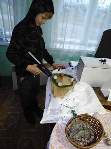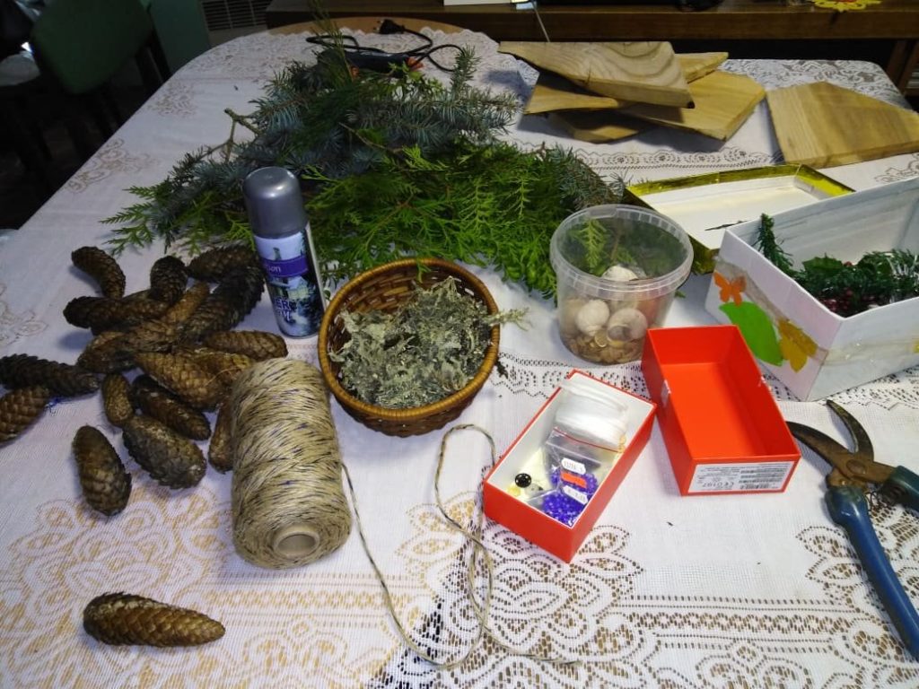 Adventinis vainikas praneša visiems, kad artėja šv. Kalėdos. Vainiko forma simbolizuoja saulę, gamtos pilnatvę. Vainikų yra ir prekyboje, bet pagamintas savomis rankomis tampa mielesniu, jam parenkame geriausią, matomiausią vietą. Vainiko pagrindas gaminamas iš įvairios žaliavos – eglių, pušų šakelių, šieno, popieriaus. Puošiamas ir spalvos derinamos pagal kiekvieno fantaziją ir išmonę. Puošyboje daugiausia naudojami įvairūs kankorėžiai, kriauklelės, uogelės bei daug kitų elementų. Tokių adventinių  vainikų gamybos užsiėmimas vyko ir Dietkauščiznos bibliotekoje. Šiais metais užsiėmimui pasirinktos medinės lentutės ant kurių buvo klijuojami kankorėžiai, kerpės ir kt… Buvo smagu ir miela. Tikriausiai ir ateityje vainikų pynimas Adventui taps šviesia, jaukia bibliotekos tradicija.