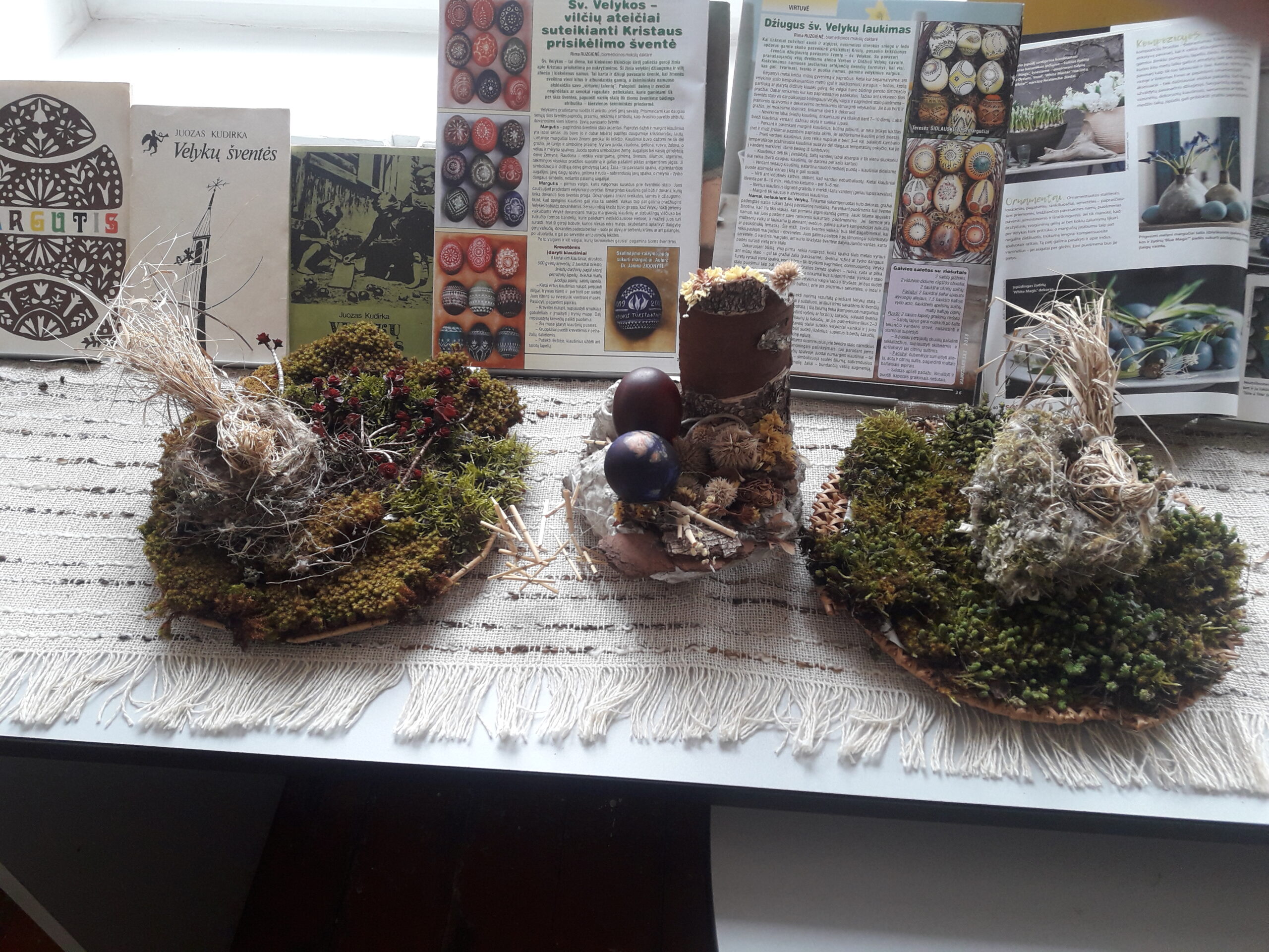 Kuklus Velykų spindulėlis – taip būtų galima pavadinti mažytę parodėlę Dysnos bibliotekoje, kuri maloniai nuteikia kiekvieną atėjusi į biblioteka. Kai už lango dar krinta snaigės, širdį pamalonina ir sušildo gražūs margučiai, lizdelyje tupintis paukštelis ir verbų šakelė. Ir tuomet atsiranda viltis, kad pavasaris jau ne už kalnų…