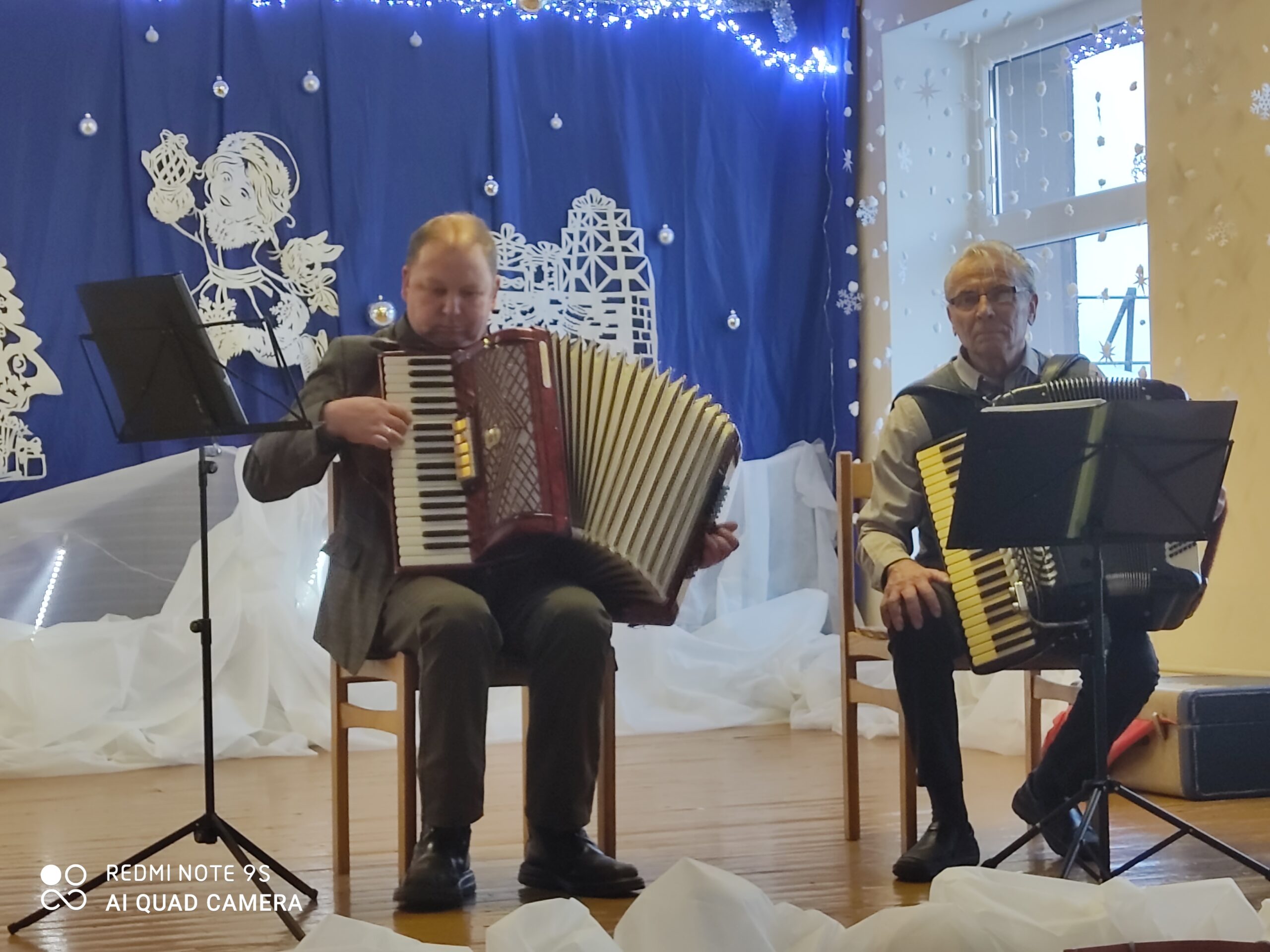 Gražiai renginį pratęsė IRKC Linkmenų padalinio kultūrinių veiklų organizatorė Marytė Alesionkienė ir muzikantai V. Kliukas ir S. Kirka, kurių grojimas ir dainavimas sukūrė šventinę pakilią nuotaiką gražiai papuoštoje seniūnijos salėje.