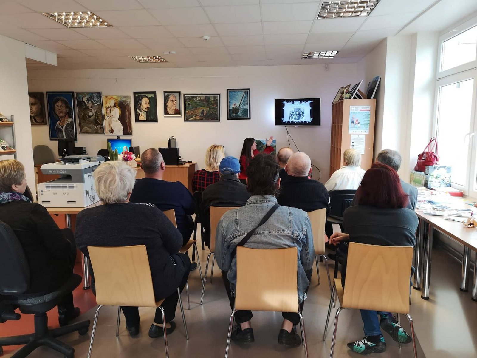 Jau kurį laiką Didžiasalio bibliotekos sienas puošia Renijaus Pernavo tapybos darbai. Ši paroda nelieka nepastebėta bibliotekos lankytojų, kurie dažnai klusia kas paveikslų autorius, iš kur jis, kodėl paveikslai tokie tamsūs, kiti, kodėl jie šviesūs… Į šiuos ir visus kitus klausimus susirinkusiems mielai atsakė Asta Meškėnaitė su Renijaus vaikystės draugu Rolandu. Tai buvo jautrus tapytojo, kaip asmenybės, kaip kūrėjo, jo sudužusios jaunystės pristatymas perpintas Giedrės Mičiūnaitės eilėmis. Dailininko draugas Rolandas karštai ir įtaigiai pasakojo apie tapytojo charakterį ir ne tik gerąsias jo puses.