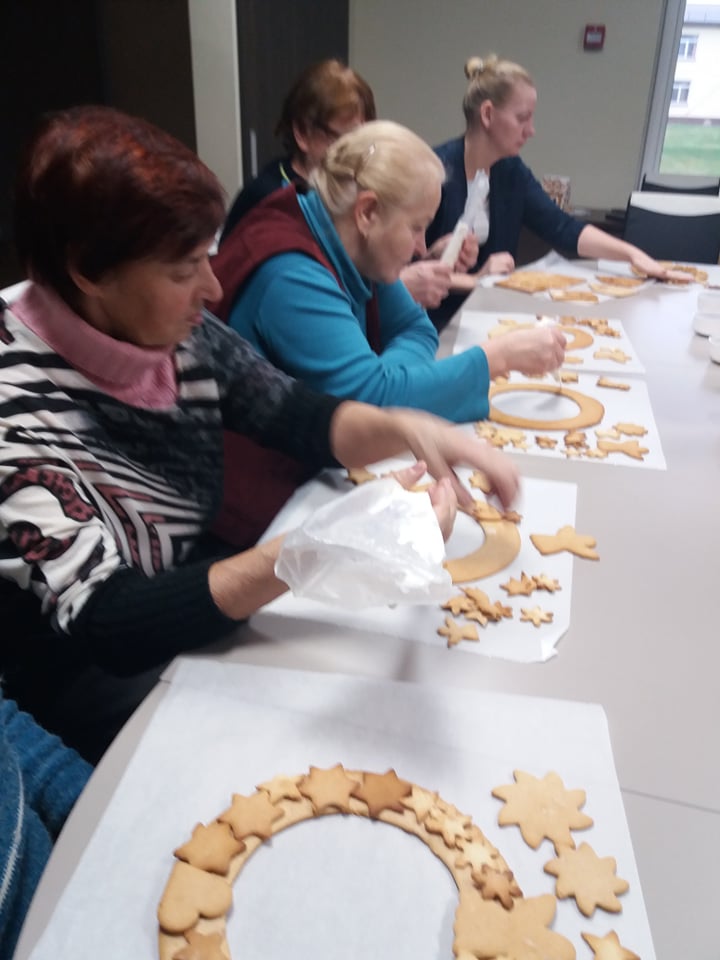 O gal gali advento vainikas būti kitoks, netradicinis? Patikėkite, tikrai gali. Tuo galėjo įsitikinti Rimšės bibliotekos skaitytojai lapkričio 19 dieną susitikę su Ilgių bendruomenės „Šeimų klubo“ auksaranke Vidmanta Visakavičiene. Ji mokė pasigaminti saldžius, Kalėdomis kvepiančius advento vainikus. Sekėsi puikiai, o įsijautusios į kūrybą ir apsvaigusios nuo kerinčių kvapų renginio dalyvės pagamino dar ir kelis Kalėdinius namelius. Už lango niūrus ruduo, artėja advento laikotarpis, o Rimšėje jau kvepia Kalėdomis. Ačiū Vidmantai ir visoms kitoms darbštuolėms.