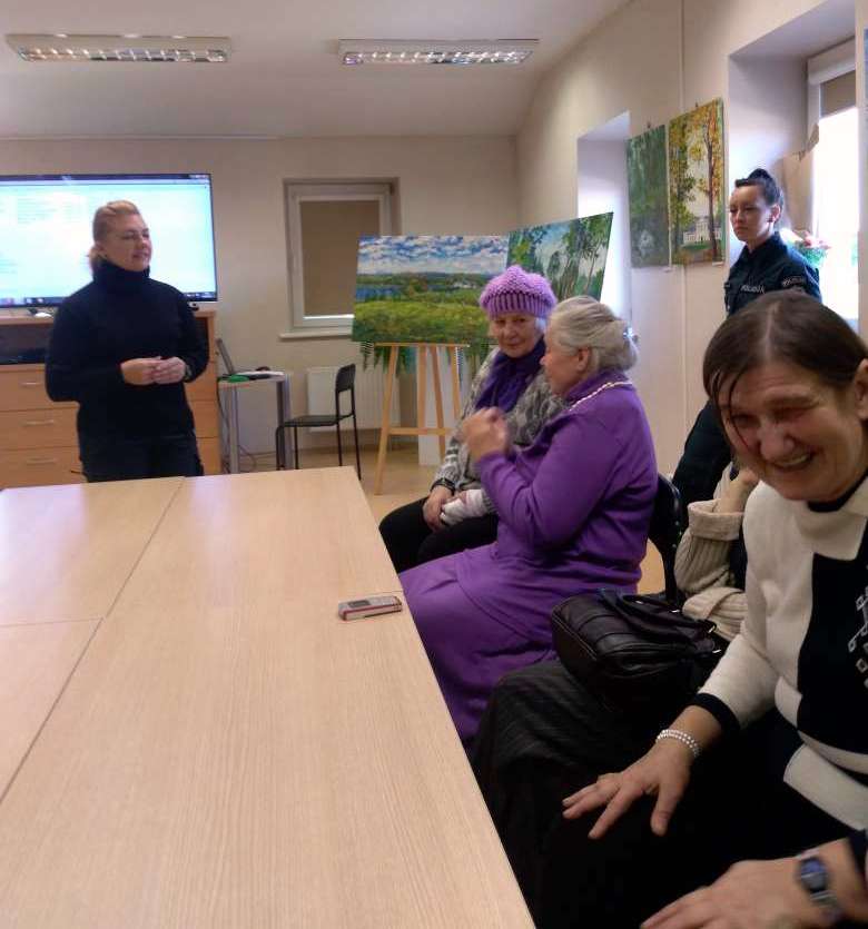 Vasario 24 dieną klubo „Rudenėlis“ nariai tradiciškai rinkosi į biblioteką sužinoti, pabūti, pabendrauti. Klubo popietė „Saugesnis internetas prasideda nuo tavęs“ buvo skirta Tarptautinei saugesnio interneto dienai. Dažnas apie elektroninį saugumą nesusimąsto tol, kol tai nepaliečia jo asmeniškai. Ką daryti, kad internete būtų saugu? Į šį klausimą senjorams atskubėjo atsakyti policijos pareigūnės. Jos sakė, kad nereikėtų skelbti internete jokių asmens duomenų, susikurti tinkamą slaptažodį, kontroliuoti viešinamą informaciją, naudoti antivirusinę programą, baigus darbą atsijungti nuo paskyrų ir daug kitų priemonių, kurios galėtų apsaugoti nuo sukčių internete. Pareigūnės daug kalbėjo apie labai pavojingus telefoninius sukčius, aiškino kaip jų išvengti, būti budriems ir į tai žiūrėti rimtai. Įtarus, kad skambina sukčiai, padėti ragelį, visada skambinti artimiesiems, policijos pareigūnams ir viską išsiaiškinti, nes sukčiai veikia labai greitai ir organizuotai. Senjorai labai domėjosi šiomis temomis, uždavė daug klausimų pareigūnėms ir patys pasakojo įvairius panašius nutikimus.