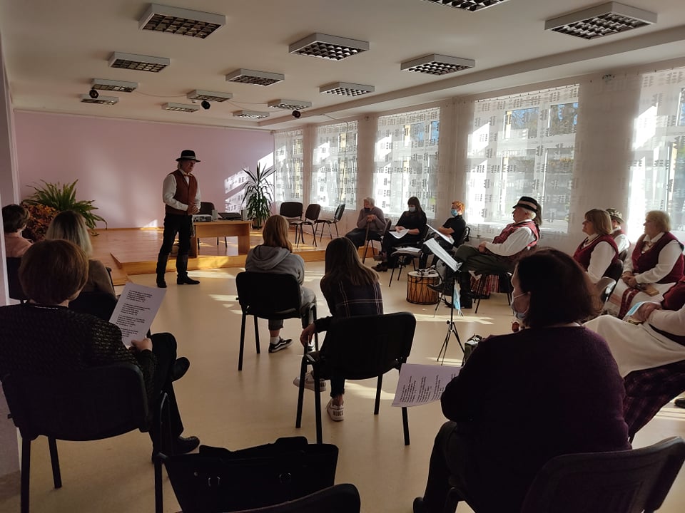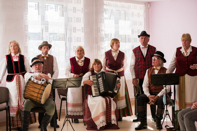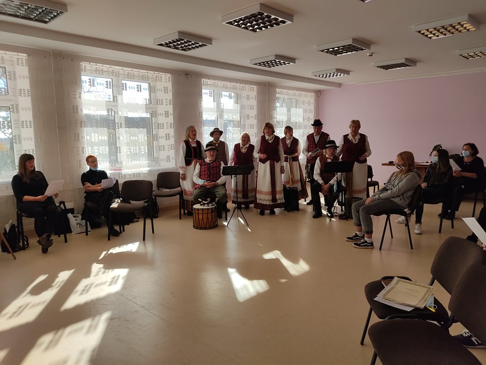 Muzikos, dainų ir pasakojimų susitikimo Mielagėnų bibliotekoje metu negailėjo Mielagėnų muzikos mylėtojų kolektyvas „Dainoriai“. Dauguma kolektyvo narių vyresnio amžiaus, kalbantys tarmiškai. Du iš jų mūsų krašte vadinami ,,Mielagėnų žentais“ – dzūkas Mindaugas ir žemaitis Romutis. Jų visada įdomu klausytis. Įdomu, ne tik ką pasakys, bet ir kaip: neieškantys žodžio kišenėje, išsaugoję gimtąją tarmę, bet kažką perėmę ir iš mūsų, aukštaičių, mielagėniškių.
