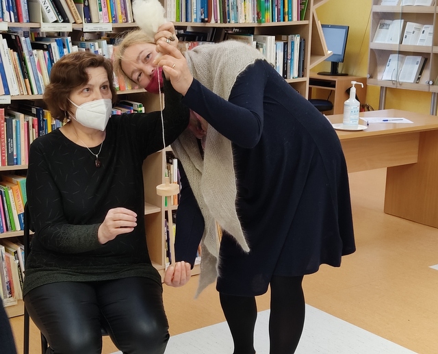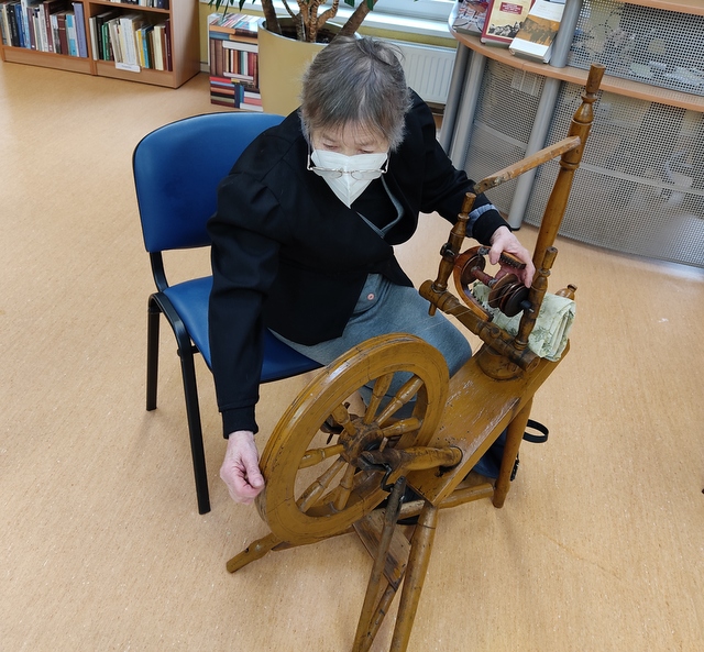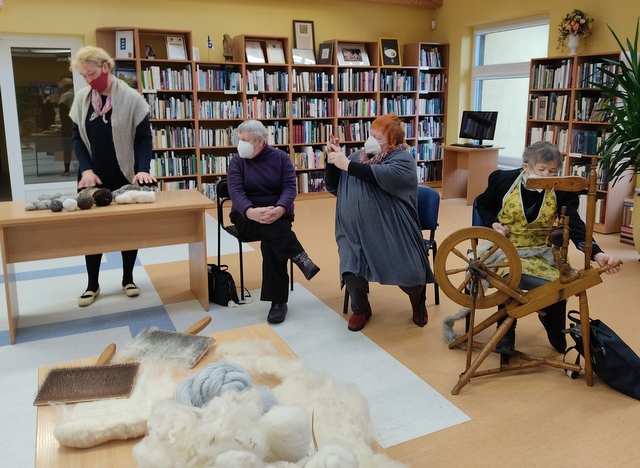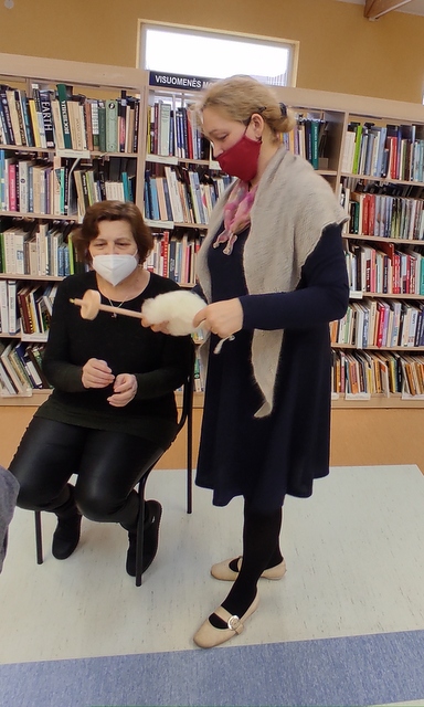 Savo pirmąjį siūlą susiverpė ir bibliotekininkė L. Andrijauskienė, labai bijojusi net verpstuką paimti į rankas. Visi kas norėjo – praturėtojo žiniomis.