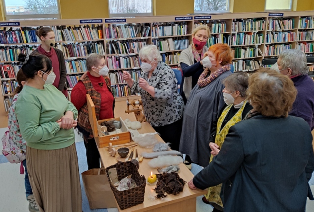 Mokymų dalyviai išgirdo ne tik labai įdomių šeimose puoselėtų tradicijų, bet ir patys savo rankomis išbandė verpstuko apsukrumą, susipažino su įvairiais vilnų pluoštais, verpimo būdais, o kai kas ir ratelį pasukti spėjo.