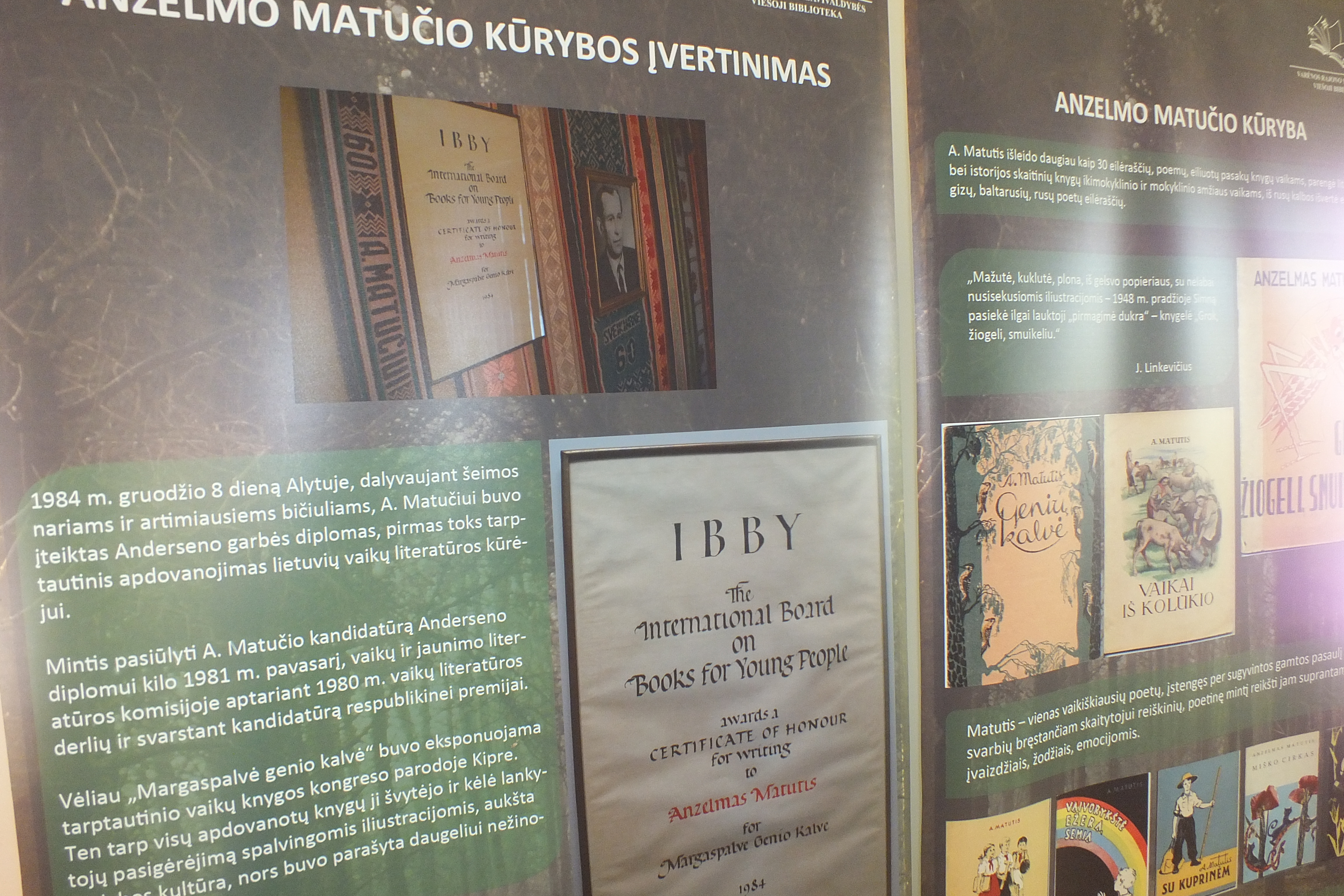 Ignalinos rajono savivaldybės viešosios bibliotekos Atradimų erdvėje (II aukštas) veikia rašytojo, pedagogo, vaikų literatūros kūrėjo Anzelmo matučio kūrybos ir gyvenimo paroda. Varėnos rajono savivaldybės viešosios bibliotekos parengta paroda bus eksponuojama iki spalio 1 d.