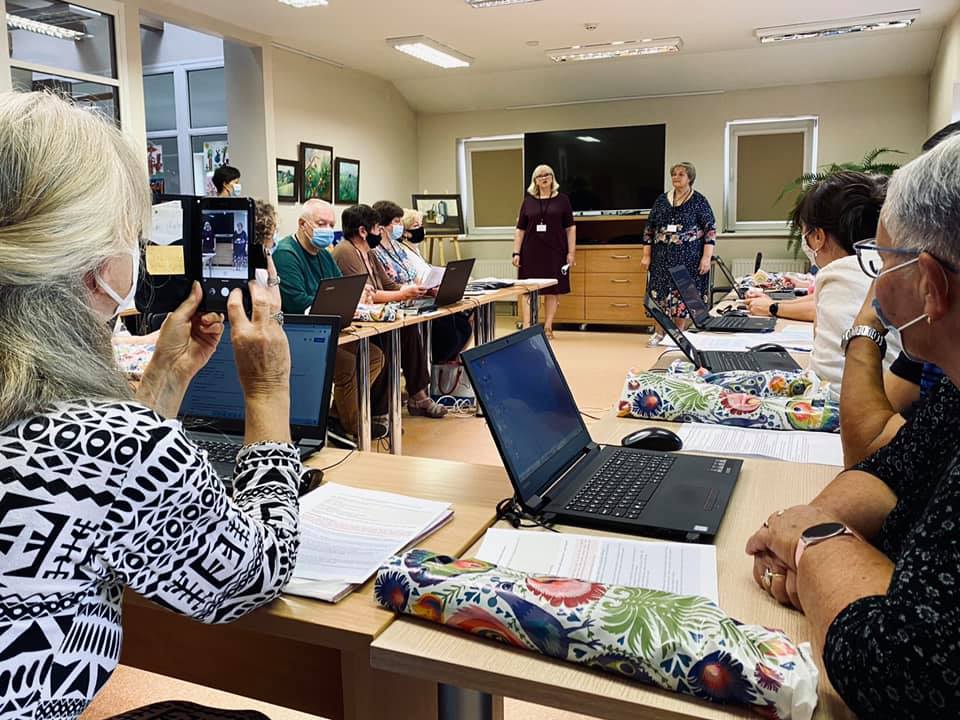 Rugpjūčio 2 dieną prisijungė suaugusių švietėjai bibliotekininkai bei besimokantieji senjorai iš 3 projekte dalyvaujančių šalių. Ignalinoje prasidėjo pirmieji projekto mokymai. Siekiant įgyti skaitmeninių kompetencijų nuotoliniam bendravimui bei ugdymui, buvo mokomasi naudotis virtualiais ZOOM, MS TEAMS, GOOGLE MEET įrankiais. Taip pat buvo mokomasi foto ir vaizdo medžiagos apdorojimo OPENSHOT programoje, kad vėliau šias žinias pritaikytų istorijų pasakojimui.