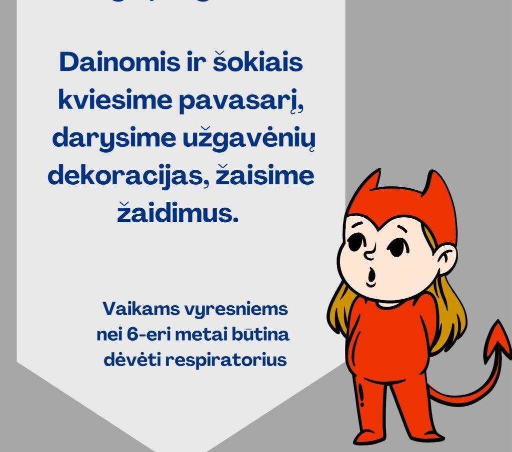 Vaikams vyresniems nei 6-eri metai būtina dėvėti respiratorius
