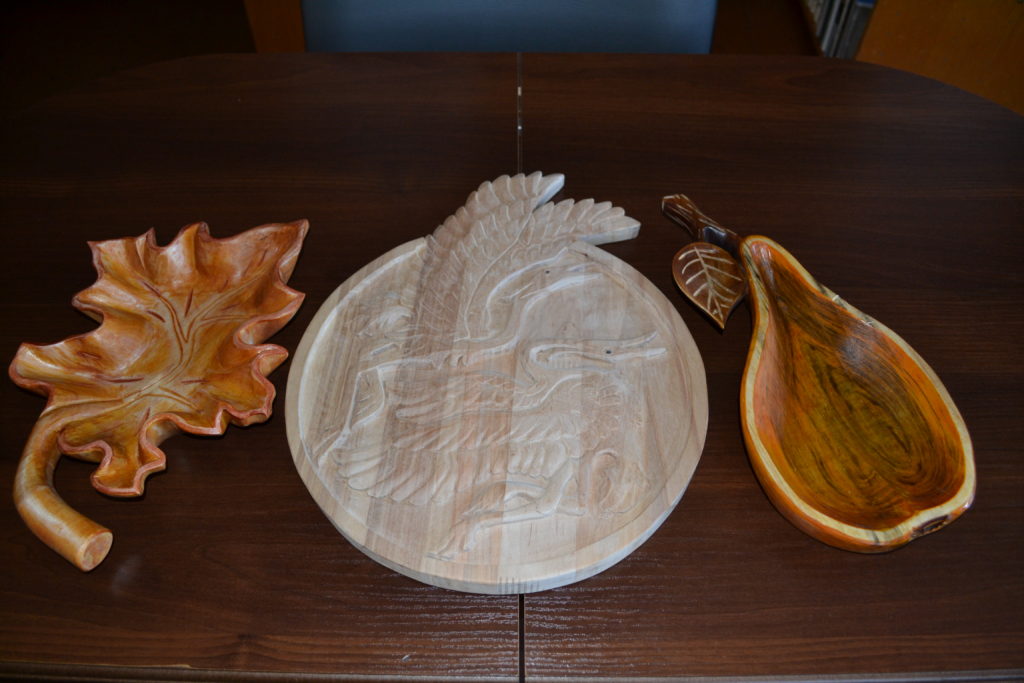 Grybėnų bibliotekoje visą vasario mėnesį veikia Vytauto Gudėno drožinių iš medžio paroda.