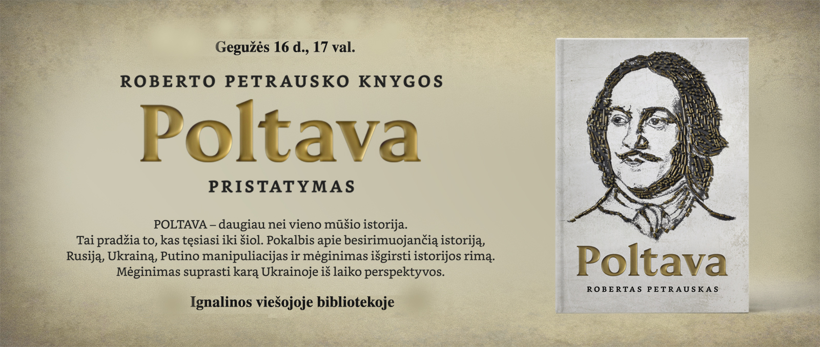 Gegužės 16 d. 17.00 val. Roberto Petrausko knygos „Poltava” pristatymas. Dalyvaus autorius.