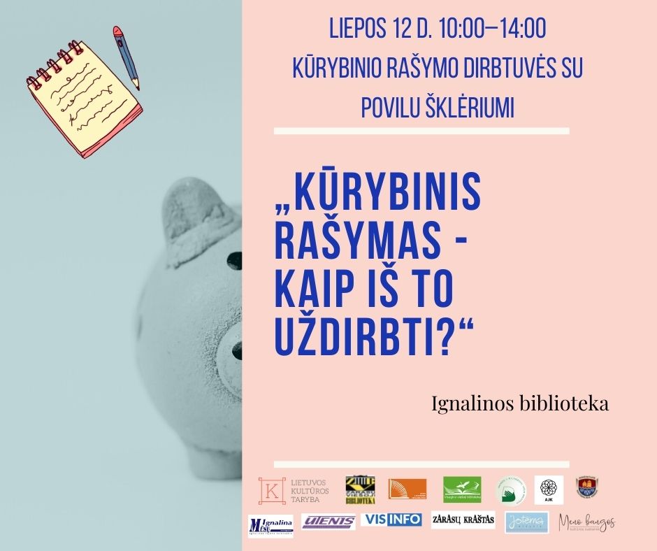 Liepos 12 d. (pirmadienį) 10 val. vyks dar vienos kūrybinio rašymo dirbtuvės su jaunosios kartos rašytoju, poetu, komunikacijos specialistu, medijų raštingumo mokytojų Povilu Šklėriumi „Kūrybinis rašymas – kaip iš to užsidirbti?“