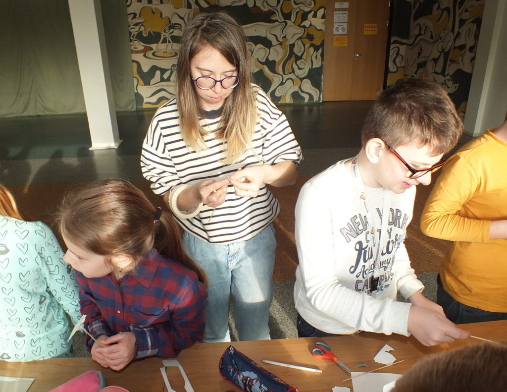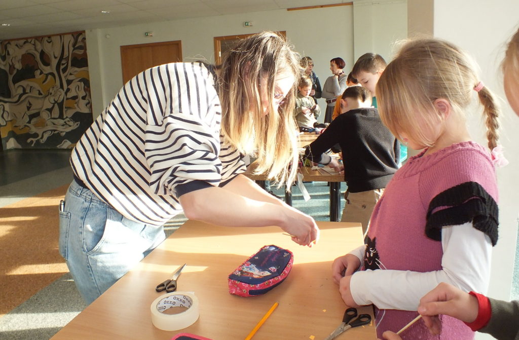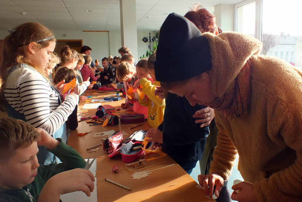 Lapkričio 13 dieną Sporto ir kultūros centre vyko Ignalinos viešosios bibliotekos  projekto „Menų dūzgės kūrybingai vaikystei“, kurį iš dalies remia Lietuvos kultūros taryba, renginys. Šį kartą trečių klasių moksleivius savo pasirodymu džiugino Vilniaus dailiųjų amatų asociacijos šešėlių teatras. Aktorė Ieva Stašelytė ir dailininkė Šarūnė Pečiukonytė parodė spektaklį „Kaip ežiukas ir meškiukas dangų keitė.“ Tai  pasakojimas apie du draugus Ežiuką ir Meškiuką, kurie gyvena miške, ieško nuotykių ir nebijo iššūkių. Istorija rodoma ekrane įvairiomis šešėlių teatro  priemonėmis su muzikiniais intarpais. Po spektaklio Ieva ir Šarūnė trečiokams pademonstravo visą spektaklio virtuvę, iš kur šešėlis ateina ir kaip pasirodo  ekrane. Čia pat organizuotose kūrybinėse dirbtuvėse merginos pasiūlė mokinukams pasigaminti savo lėlytę šešėlių teatrui. Mažieji kibo į darbą ir netrukus jau turėjo puikius personažus: ežiukus, meškiukus, katinus… Netgi traktorių…