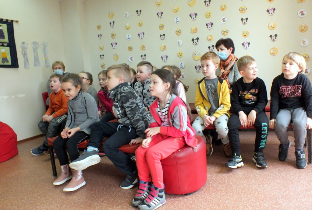 Atradę bibliotekoje daug įdomių dalykų vaikai linksmi grįžo į mokyklėlę.