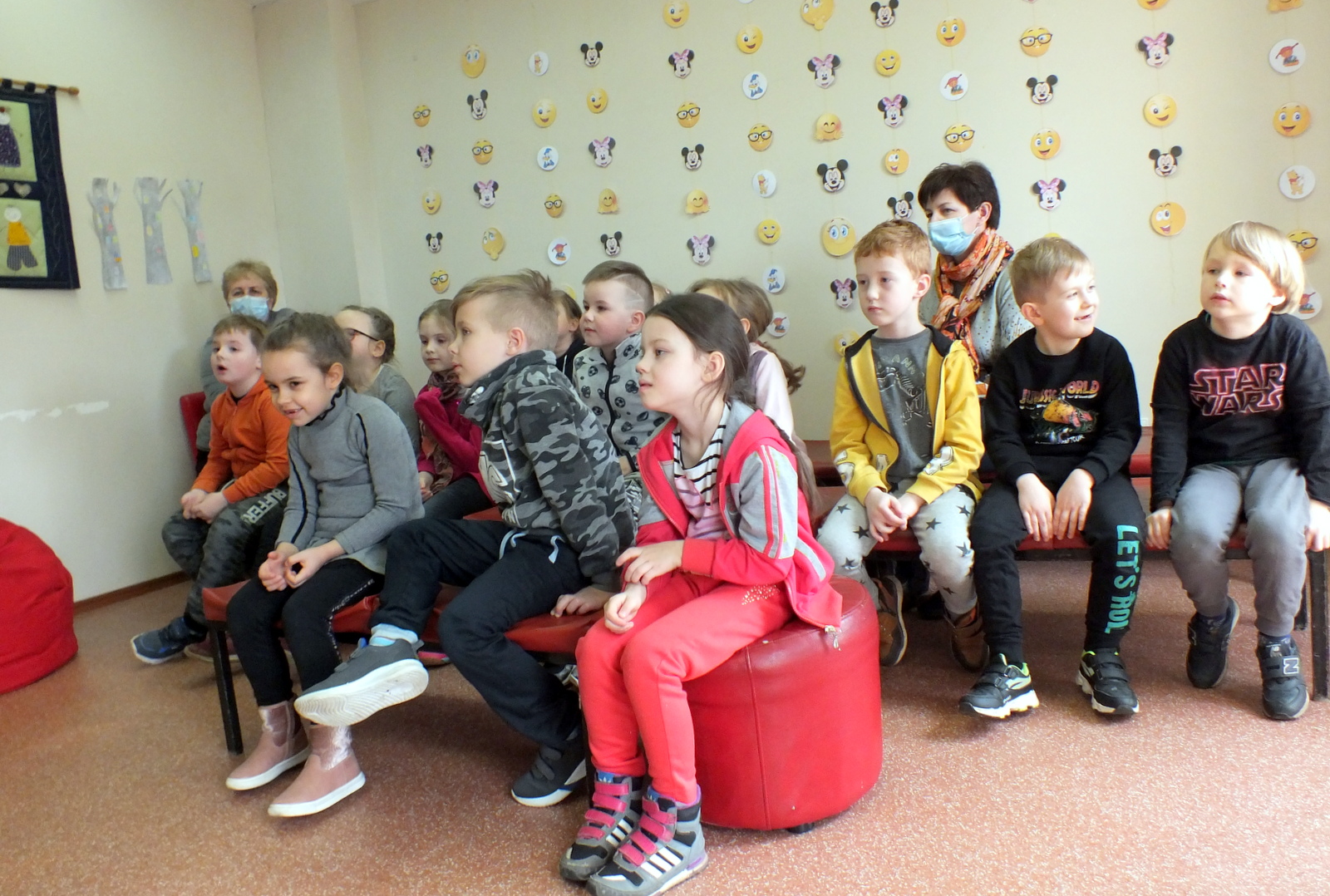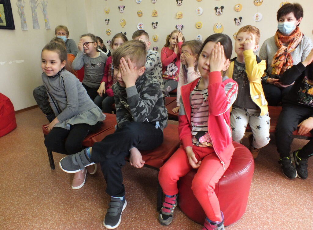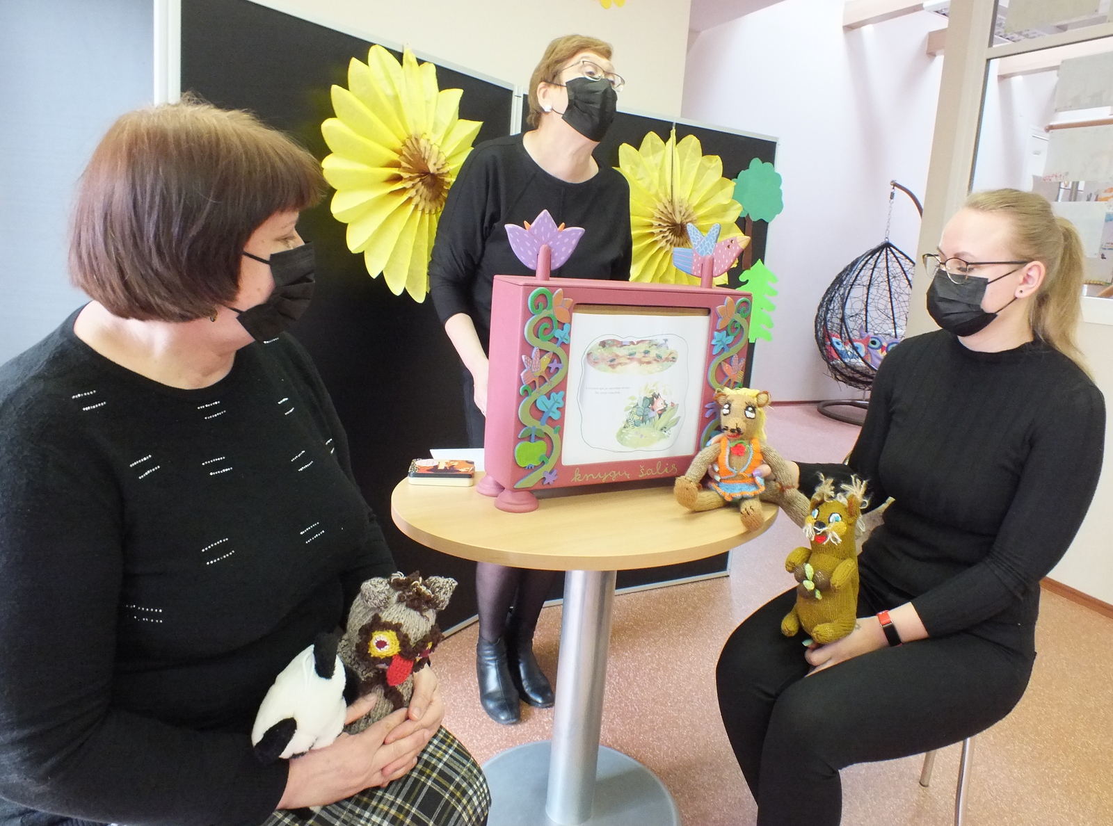 Vaikučius pradžiugino kitoks N. Kinnear knygelės „Šššš! Tyliau“ skaitymas. Knygelės iliustracijos buvo rodomos miriorama. Kas tai? Tai – tai specialioje dėžėje rankenėle sukama panorama, tarsi senoviško televizoriaus prototipas. Mirioramos lange vienas po kito keitėsi paveikslėliai gražiai papildydami bibliotekininkės Aldonos skaitomą pasaką, o bibliotekininkių Rūtos ir Erikos valdomos lėlytės lapė, meškėnas, voverė, pelėda ir meška dar labiau pagyvino šią istoriją.